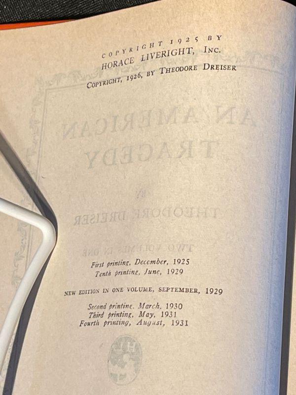 “An American Tragedy” Horace Liveright Inc. Fourth Printing 1931