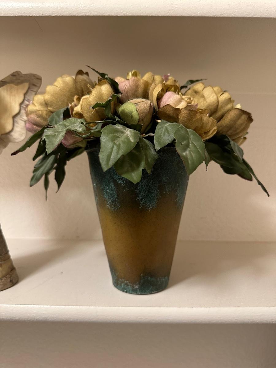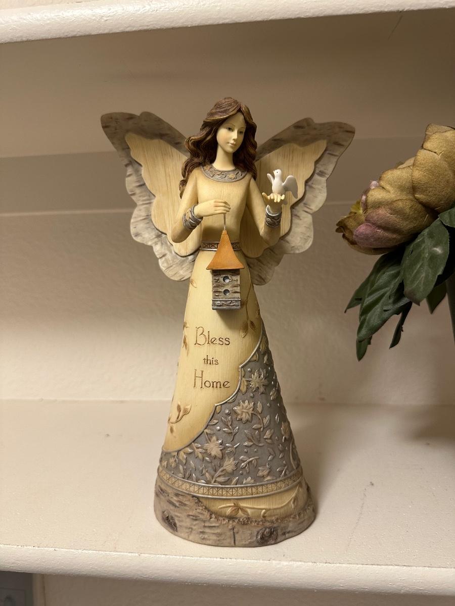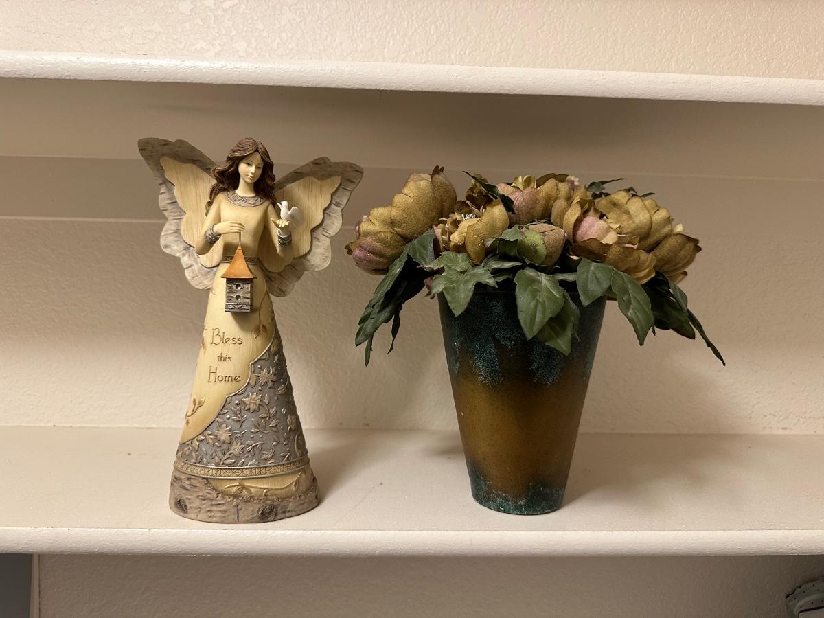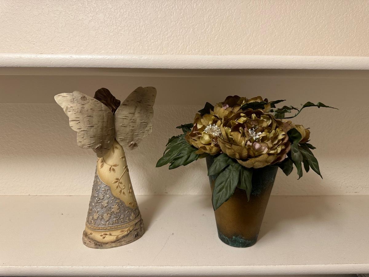 AN ANGEL AND VASE WITH SILK FLOWERS