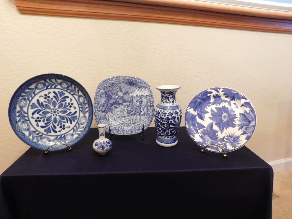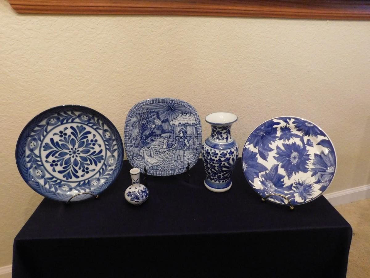 AN ASSORTMENT OF BEAUTIFUL VINTAGE WHITE AND BLUE ITEMS