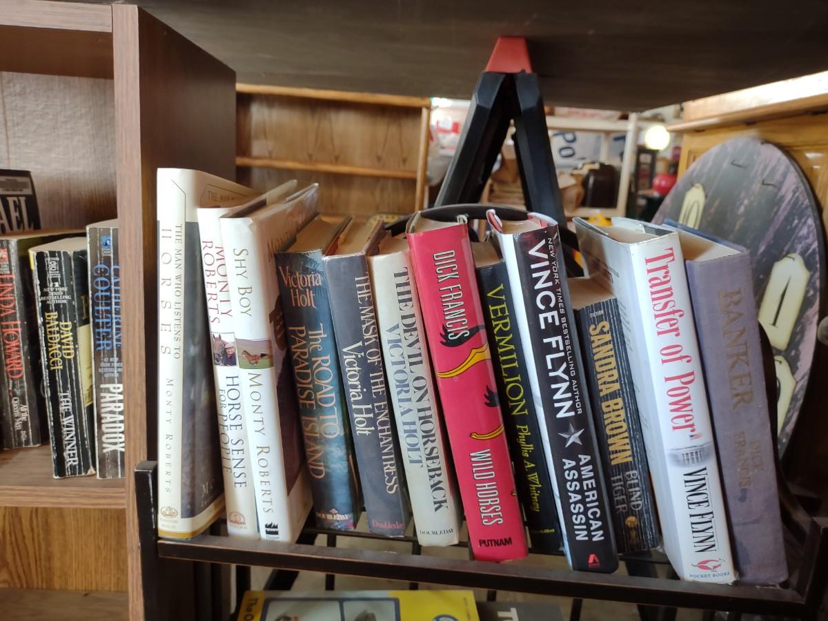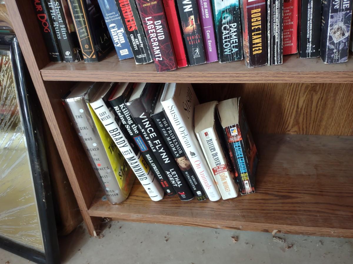 AN ASSORTMENT OF BOOKS AND 2 SMALLER BOOKCASES
