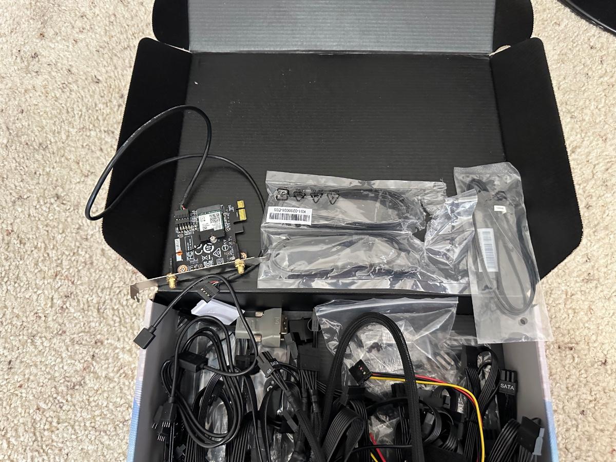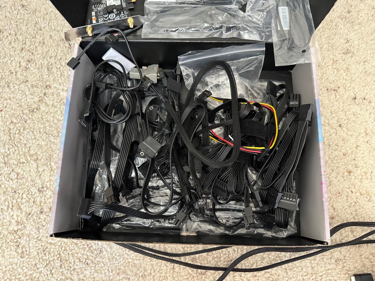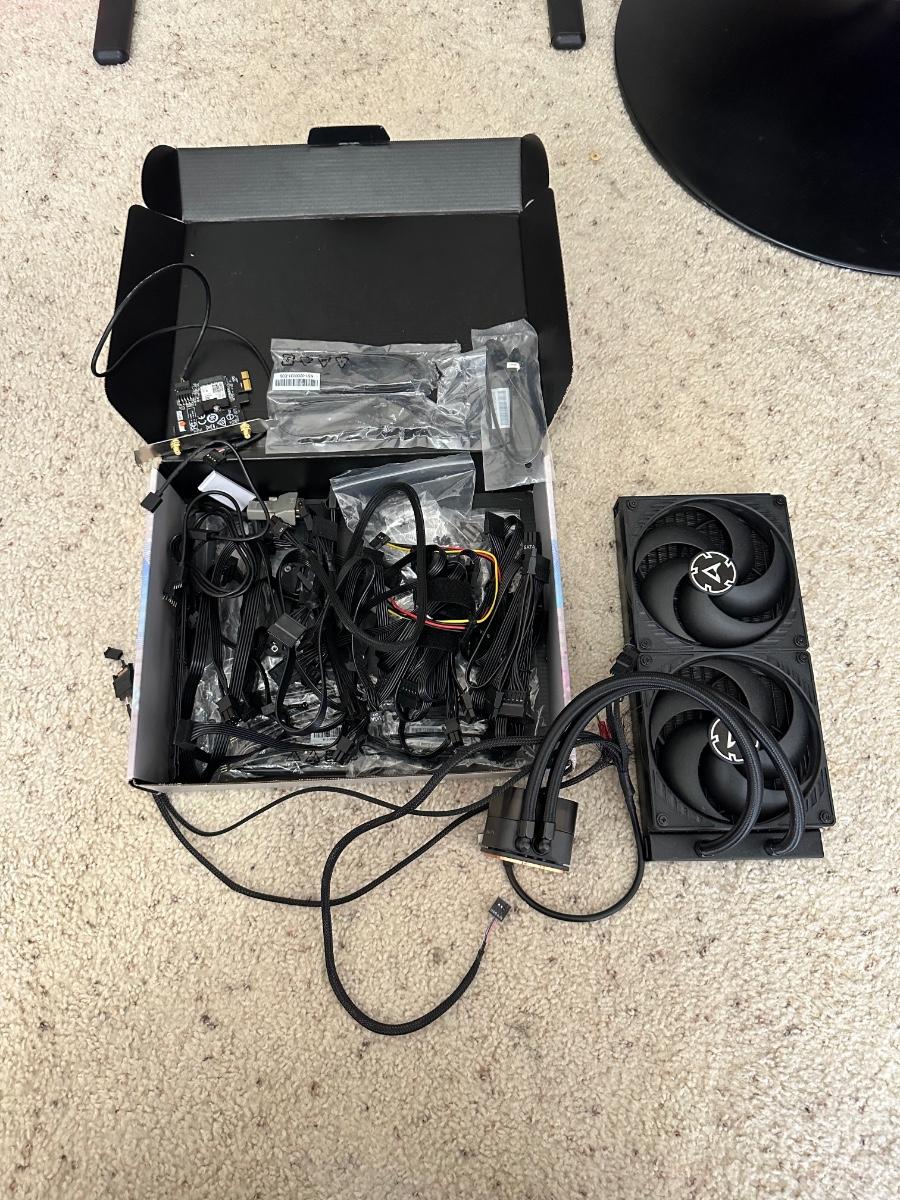 AN ASSORTMENT OF COMPUTER/ELECTRONIC CORDS AND FANS