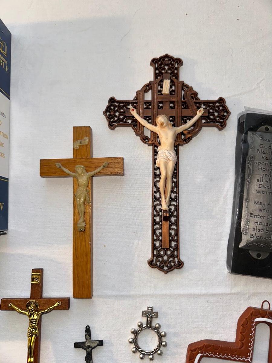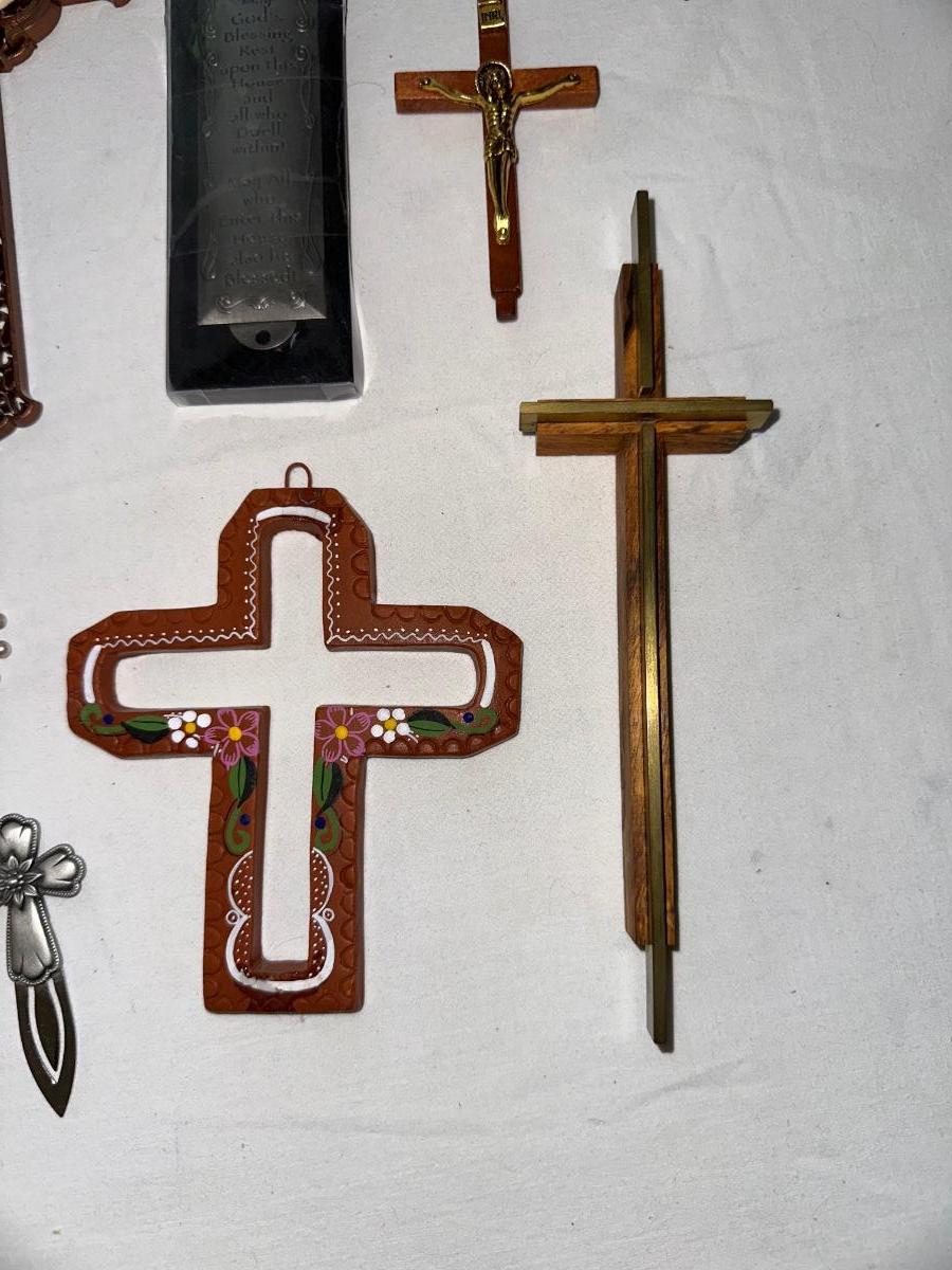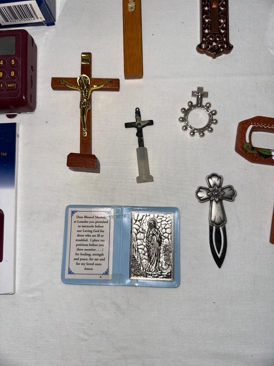 AN ASSORTMENT OF CROSSES AND WONDER BIBLE AUDIO PLAYER