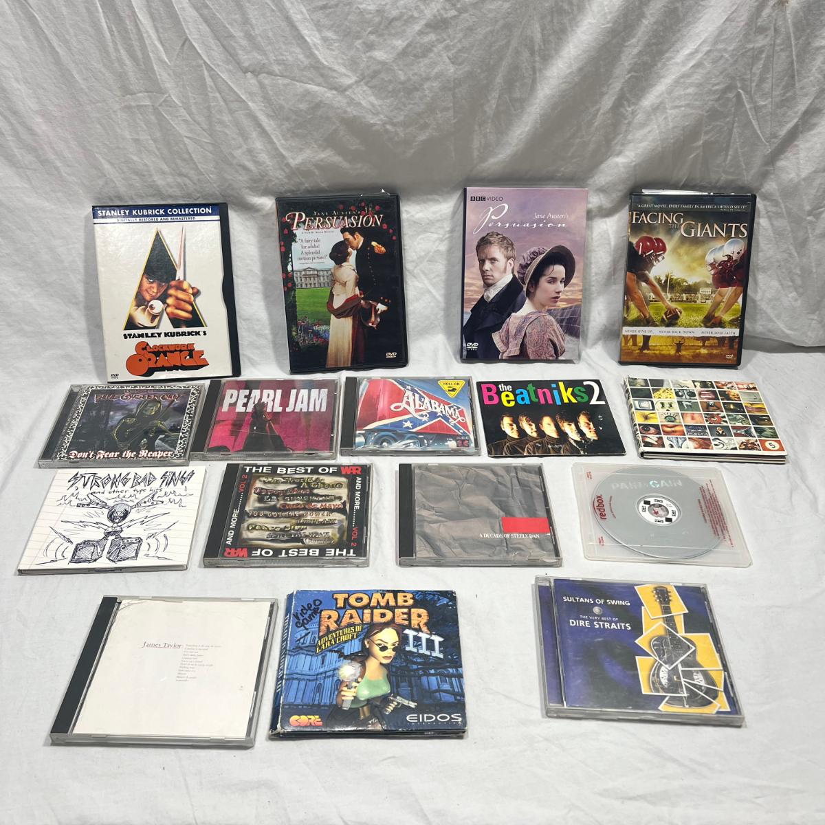 An assortment of DVD's, Cd's, and video Games. None a guaranteed but have been checked for severe scratches.