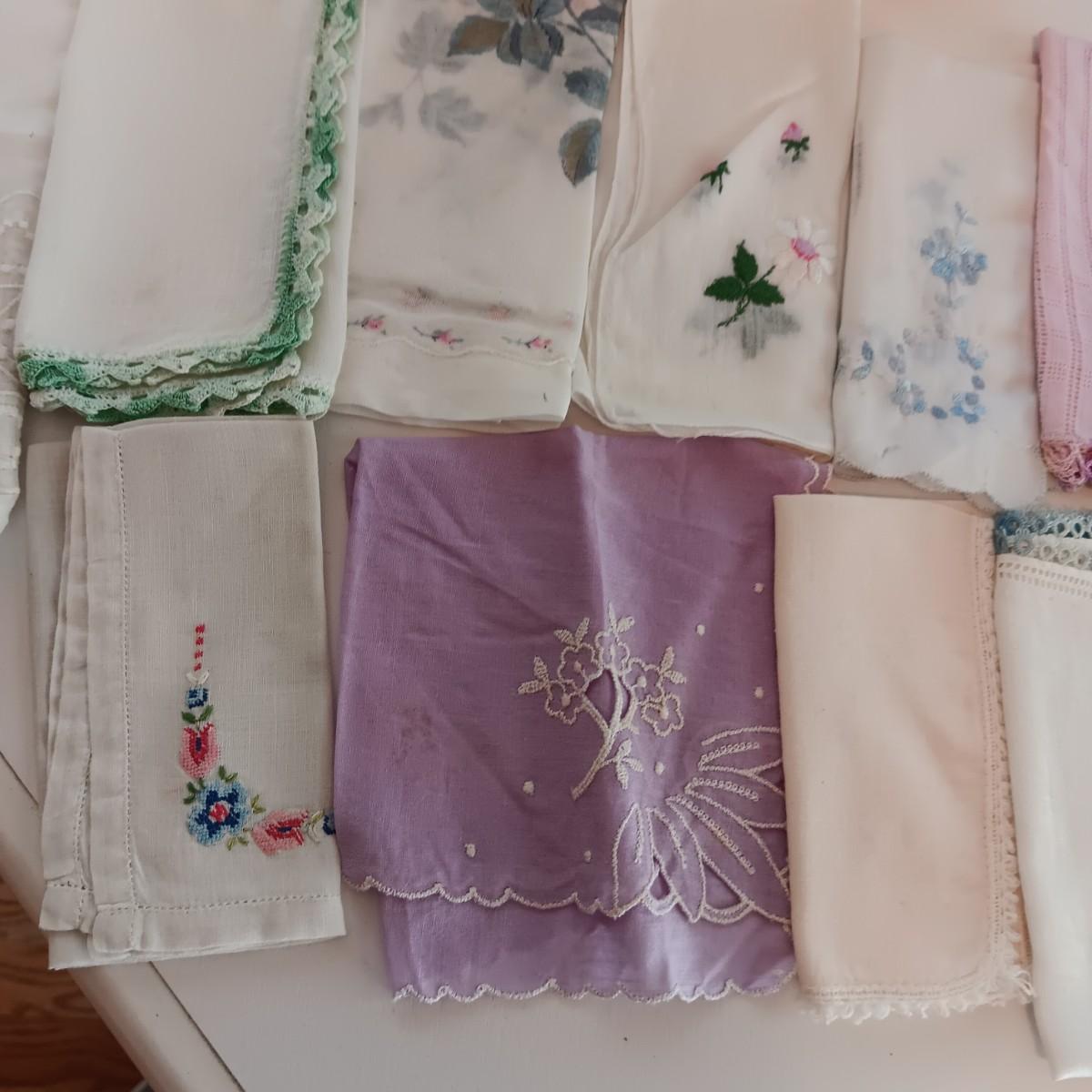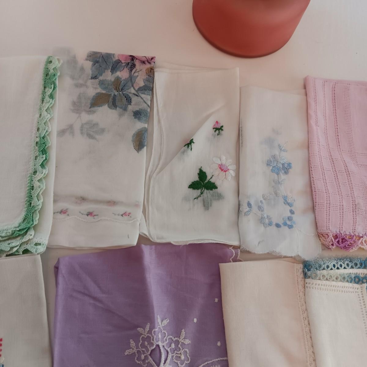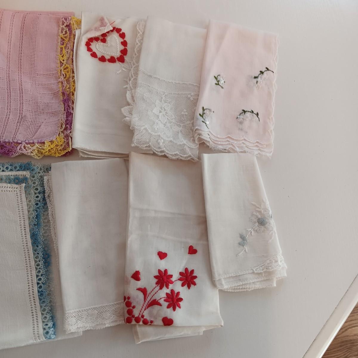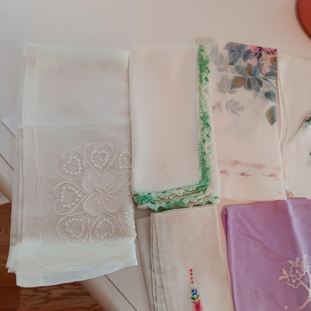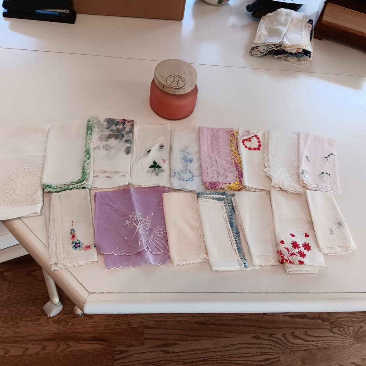 AN ASSORTMENT OF HANKIES AND A HAWKWOOD JAR CANDLE