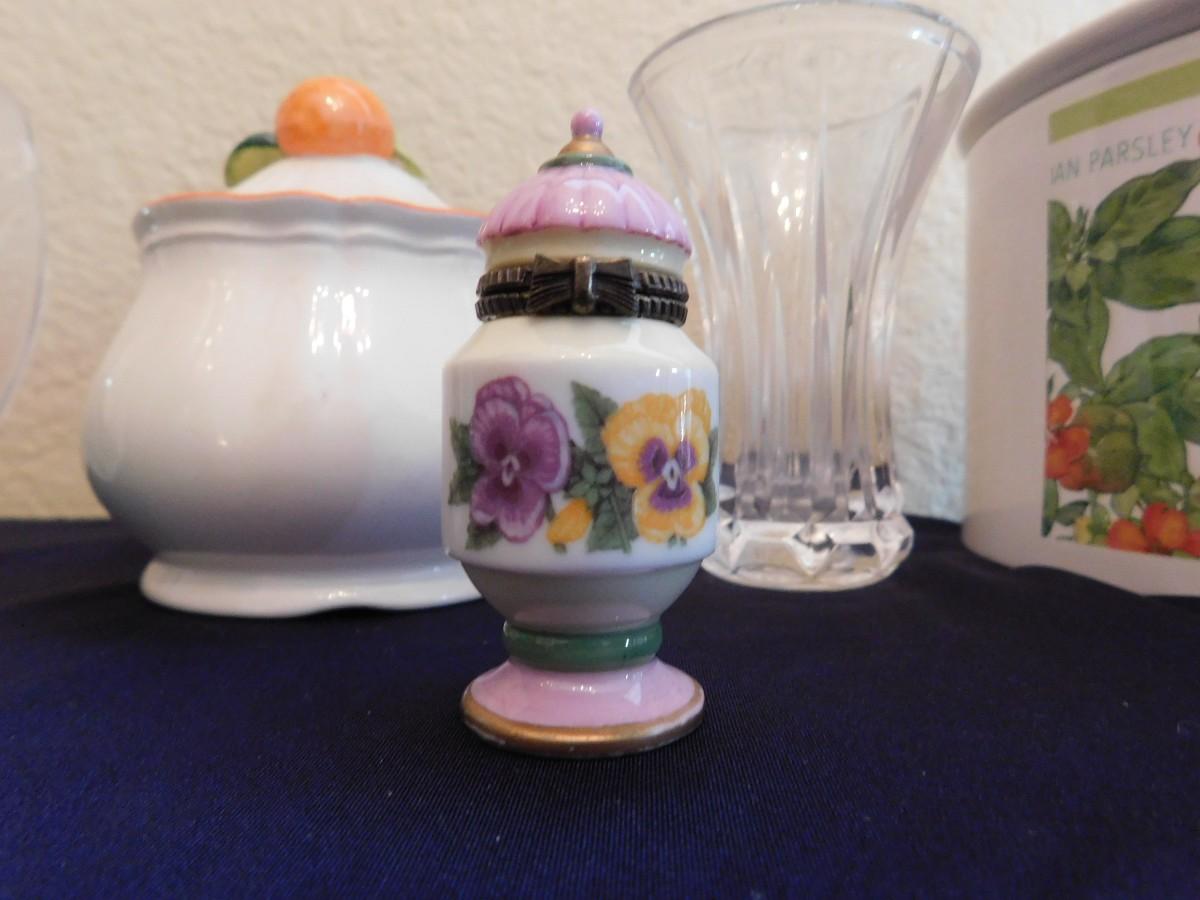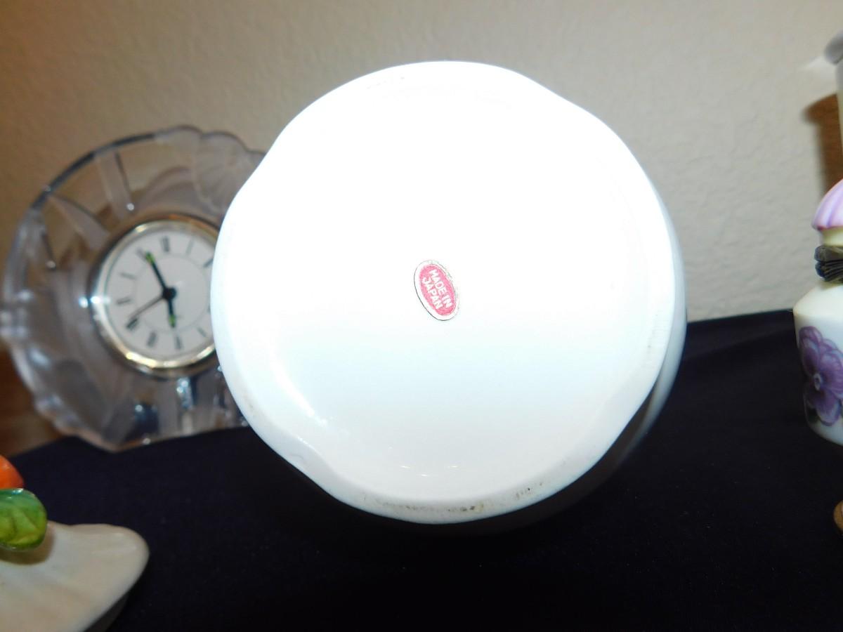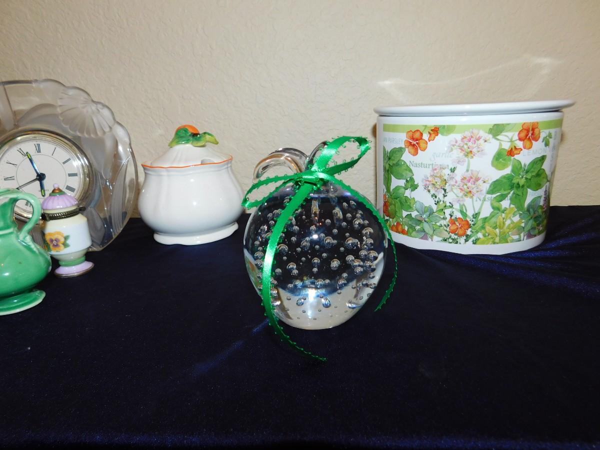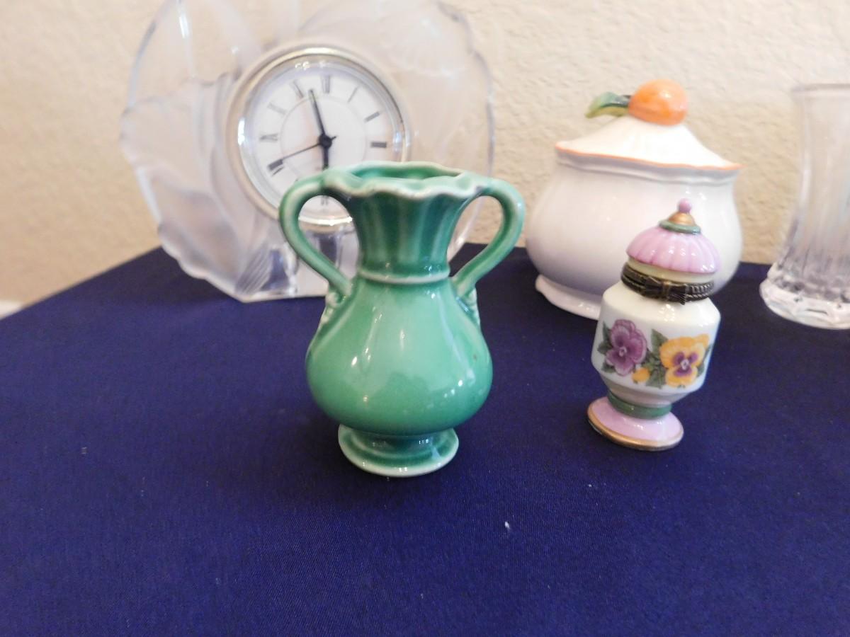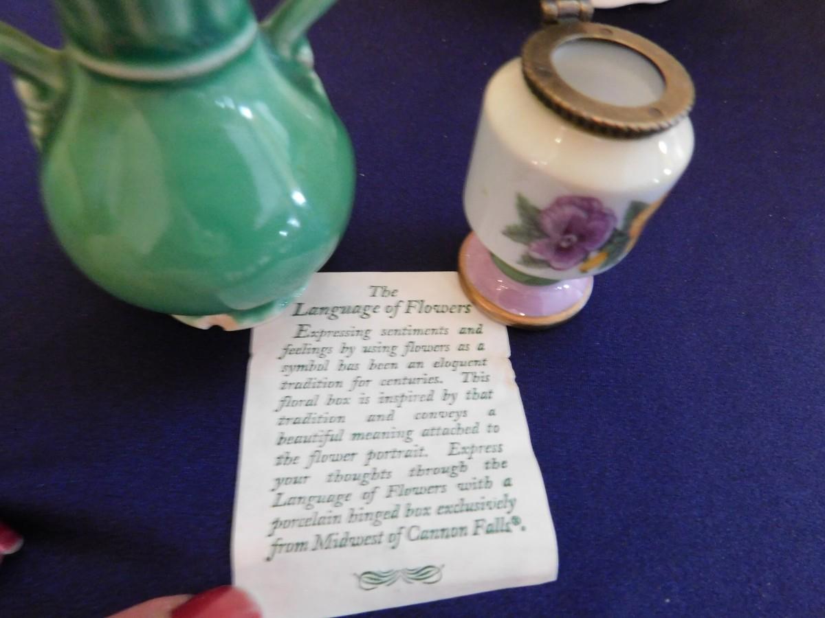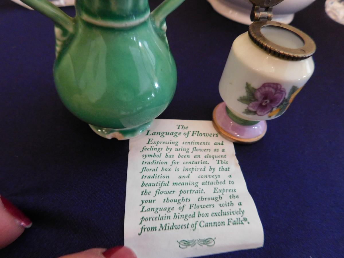 THE SMALL GREEN VASE DOES HAVE SOME CHIPS ON THE BASE BUT IT IS SUPER OLD. SO DO TO ITS AGE, IT MIGHT HAVE A STORY TO TELL