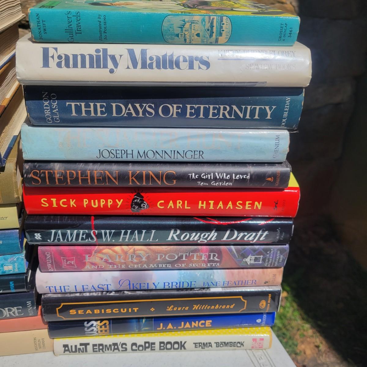 An assortment of novels in good condition with only minor cover tears or bent corners. A variety of authors and genres including Stephen King, Dean Koontz JK Rowling and more. Local pickup only