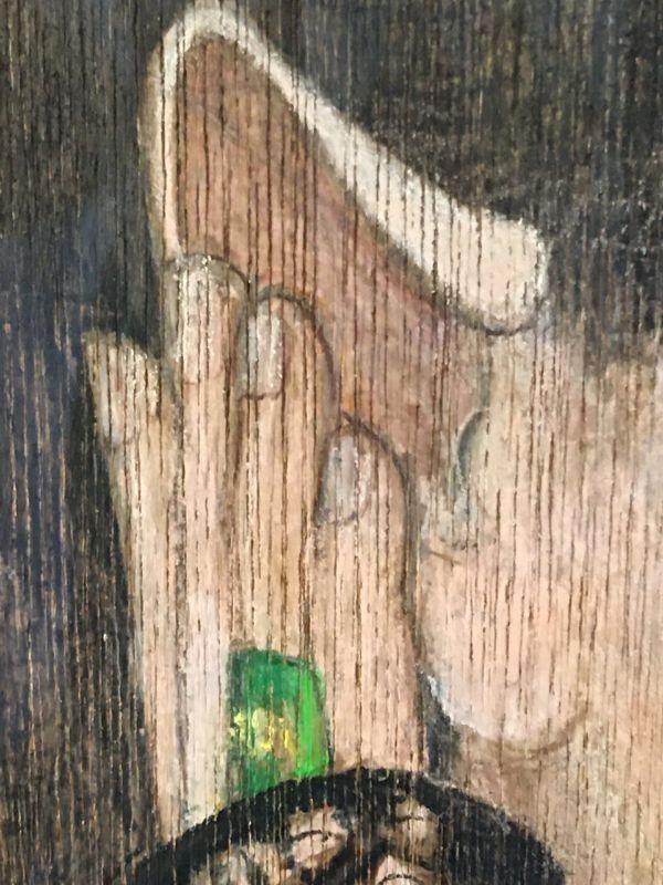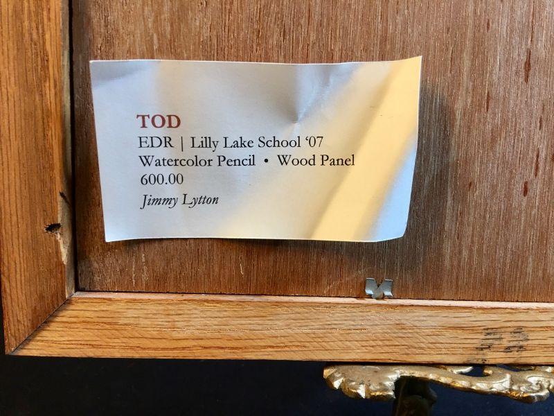 Material: Watercolor Pencil on Wood panel, signed lower right margin.