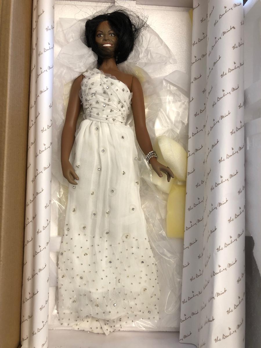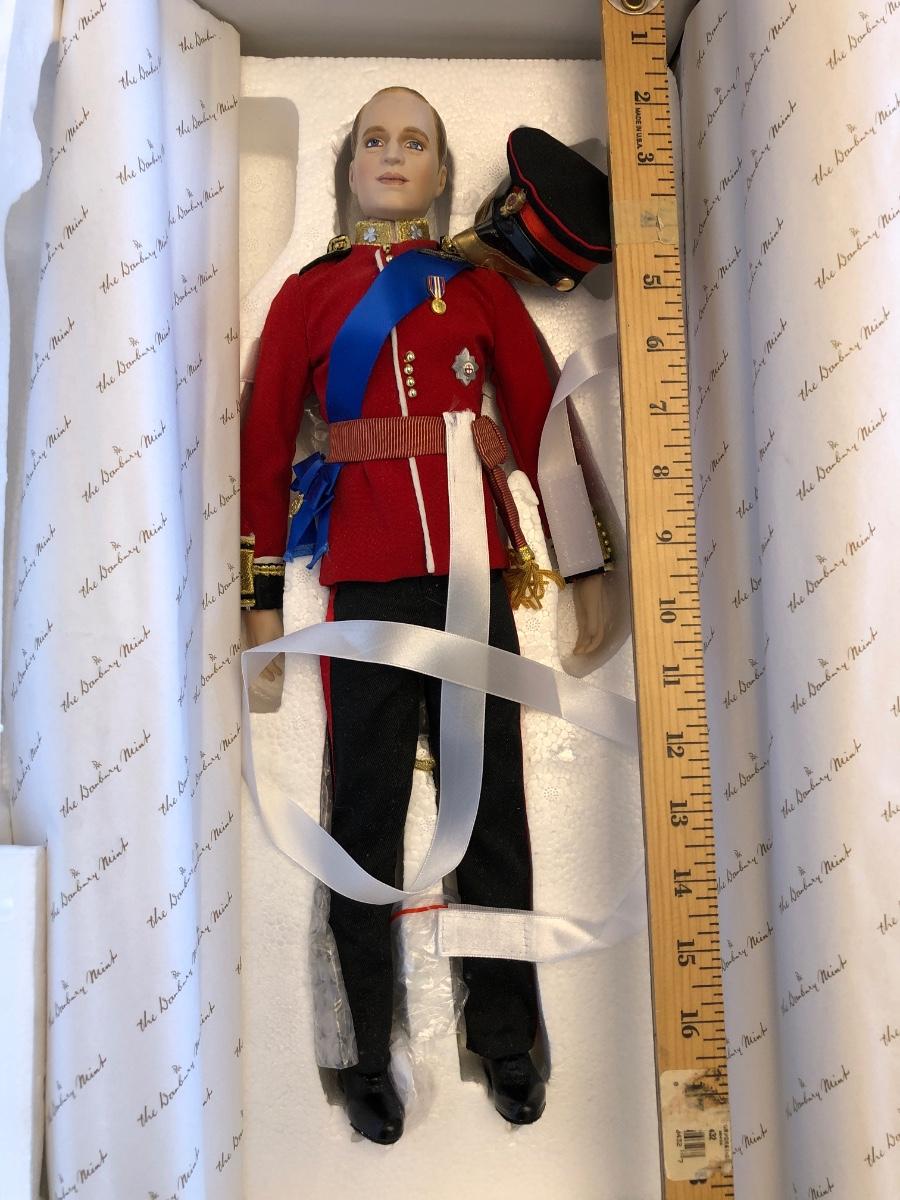 Michelle Obama and Prince William dolls from the Danbury Mint. Approximately 18 inches in original boxes. William is missing his stand.