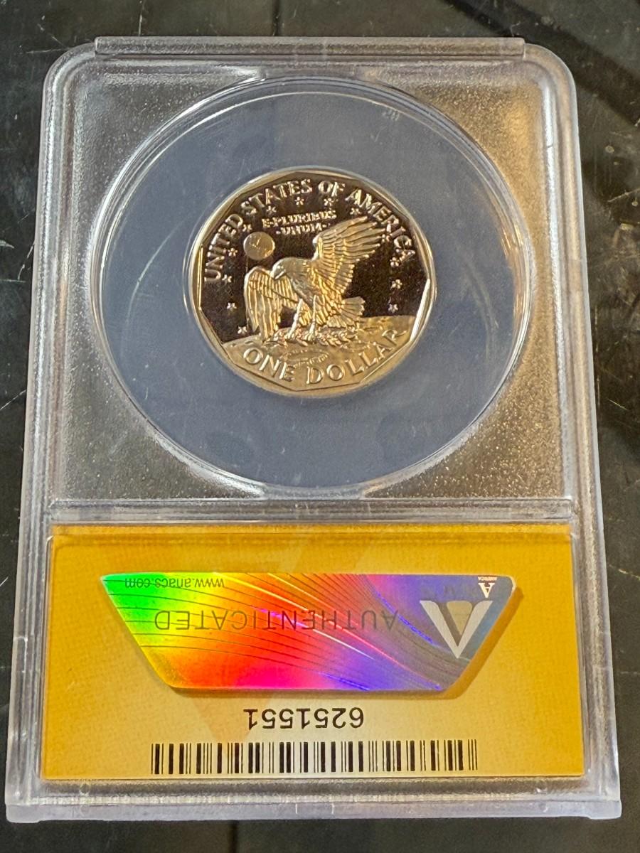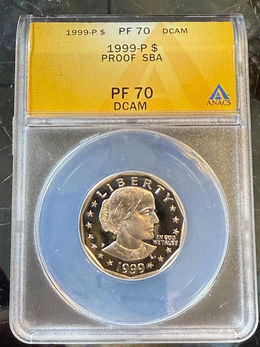 ANACS CERTIFIED 1999-P PROOF70 DEEP CAMEO SBA DOLLAR AS PICTURED. $5 DOMESTIC SHIPPING.