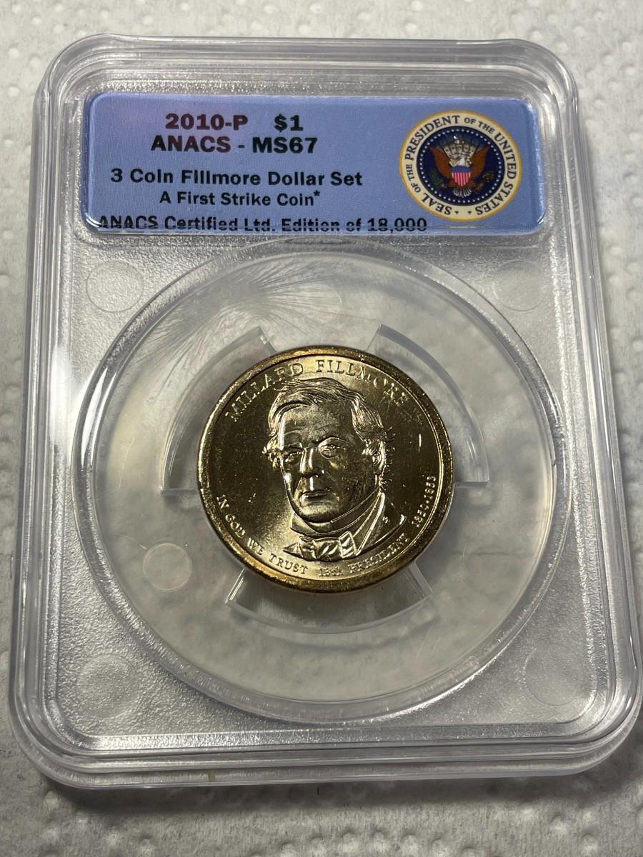 ANACS Certified 2010-P MS67 MILLARD FILLMORE Presidential Dollar Coin "First Strike" as Pictured. FREE DOMESTIC SHIPPING.