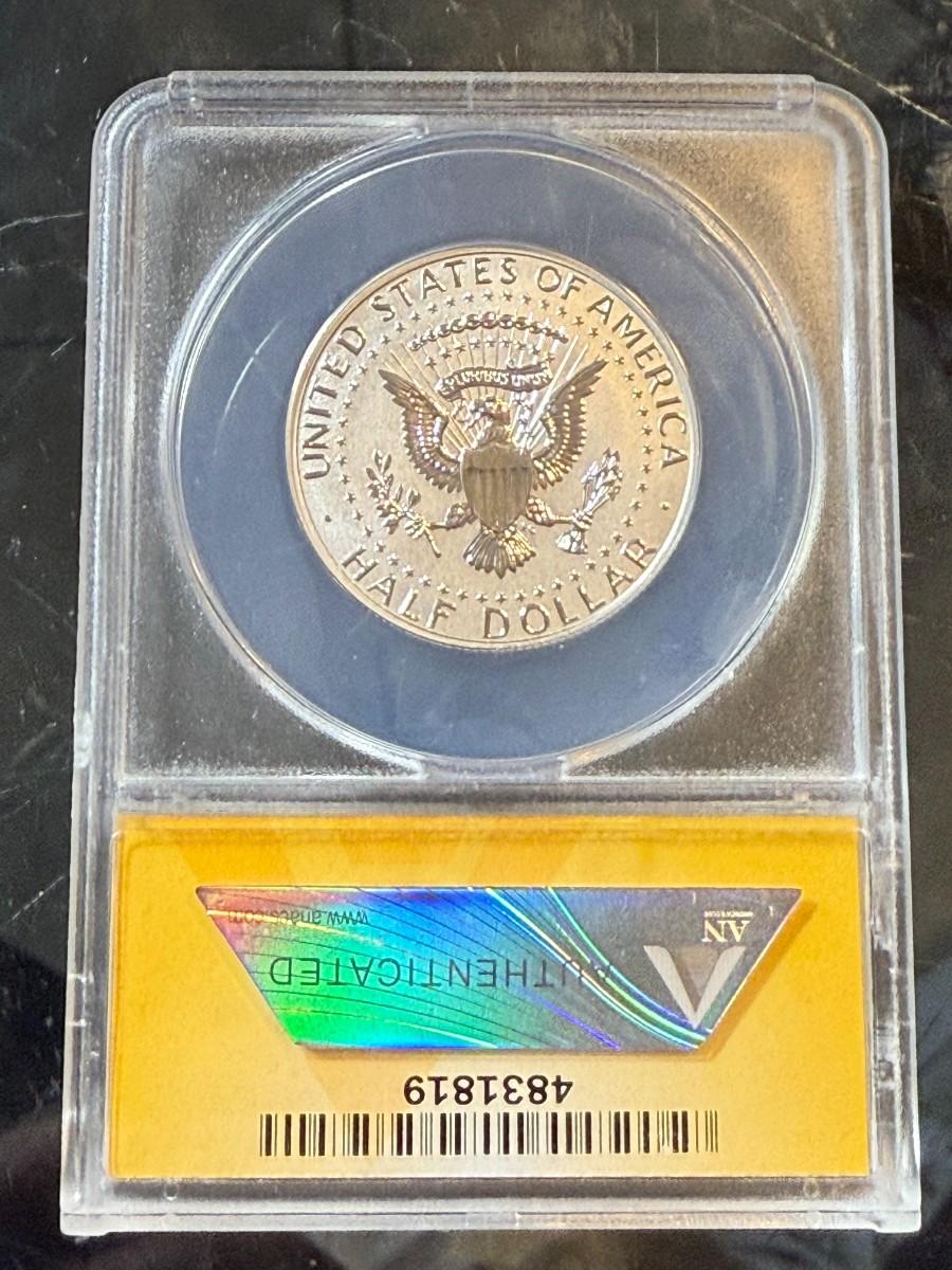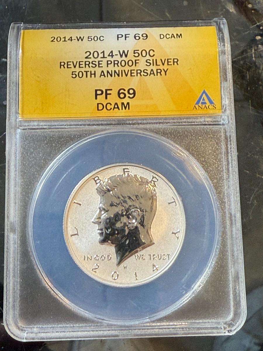 ANACS CERTIFIED 2014-W PROOF69 REVERSE PROOF SILVER KENNEDY HALF DOLLAR AS PICTURED. $5 DOMESTIC SHIPPING.