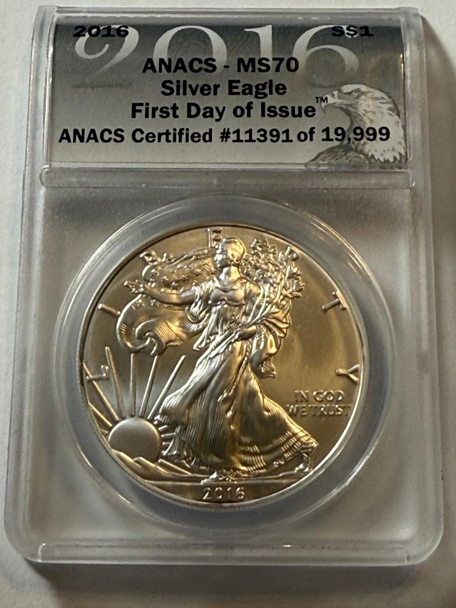 ANACS CERTIFIED 2016 MS70 SILVER EAGLE DOLLAR 1-OUNCE COIN AS PICTURED. $5 DOMESTIC SHIPPING.