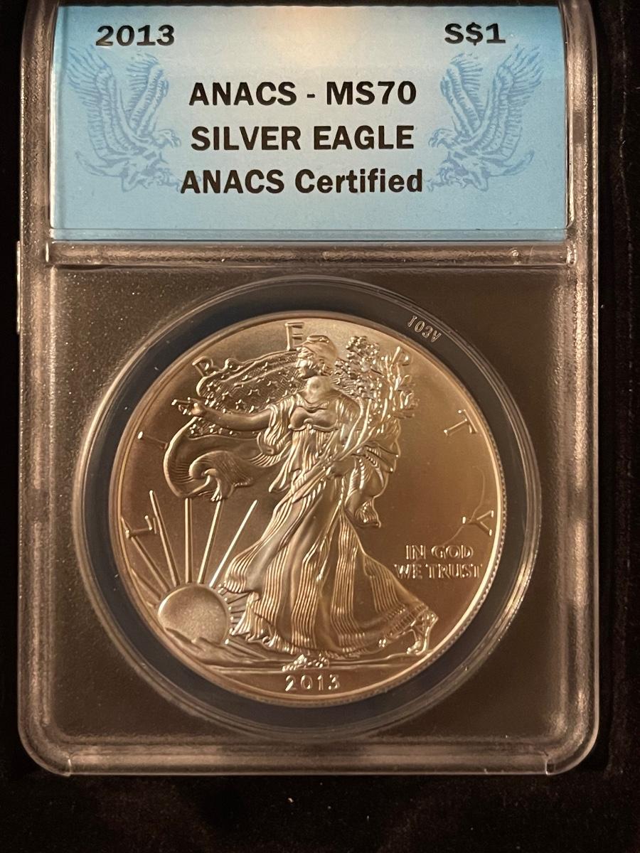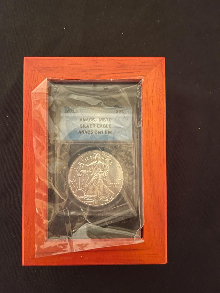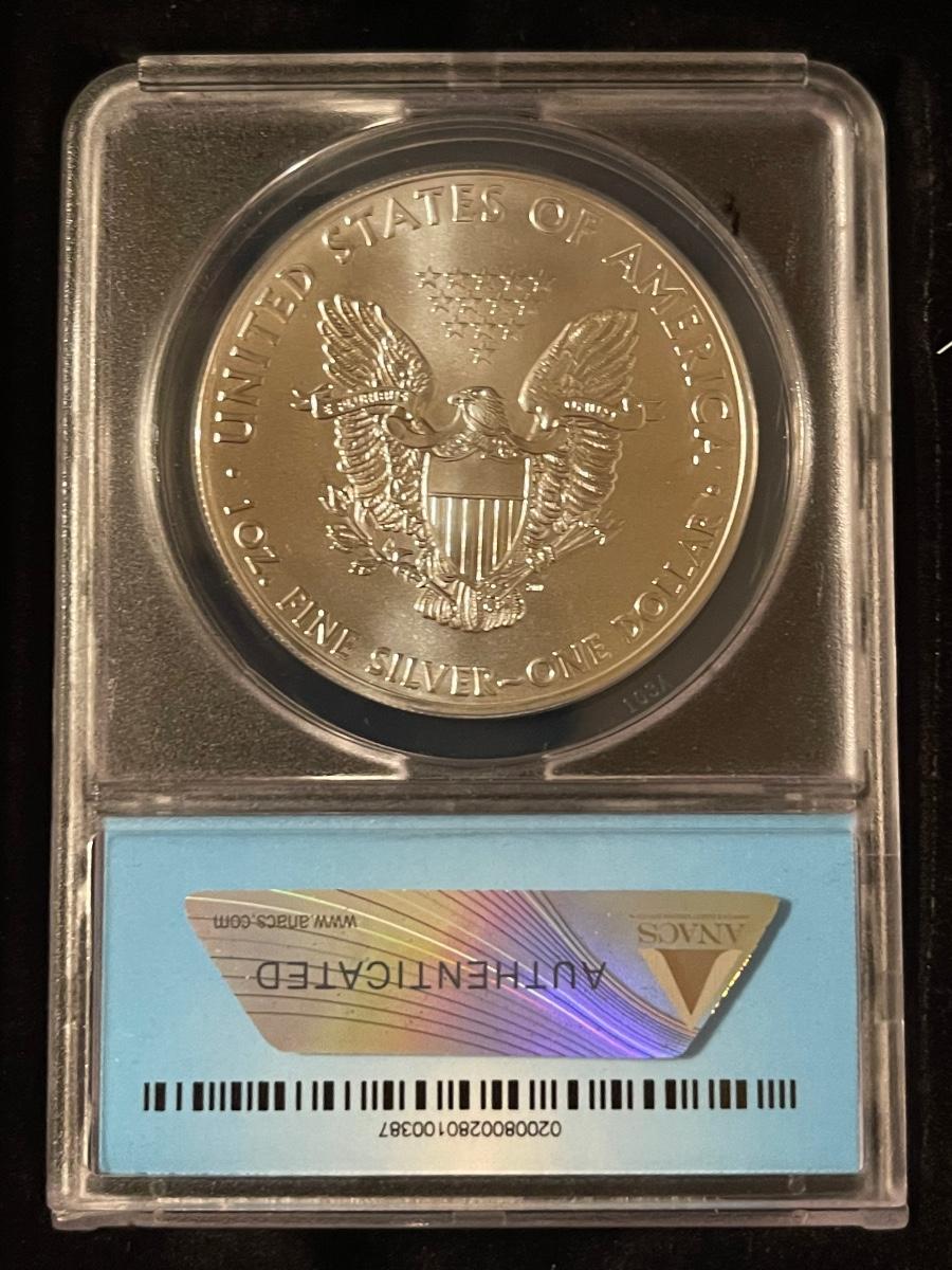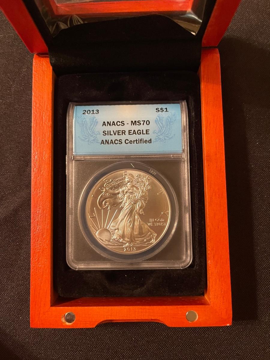 ANACS certified MS-70 silver Eagle dollar with box & case