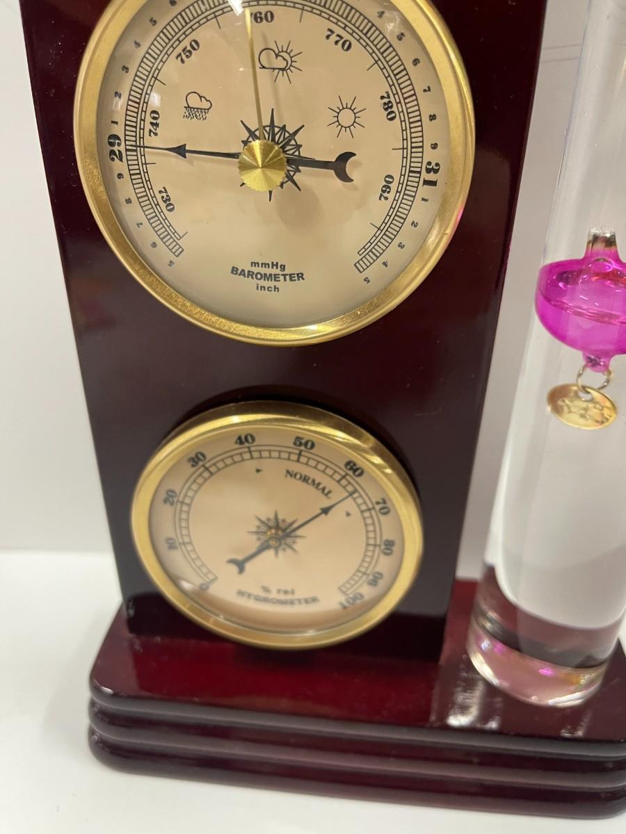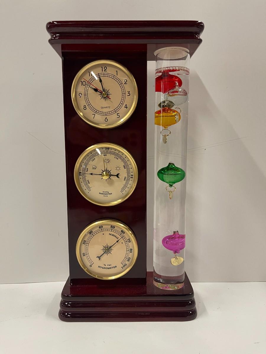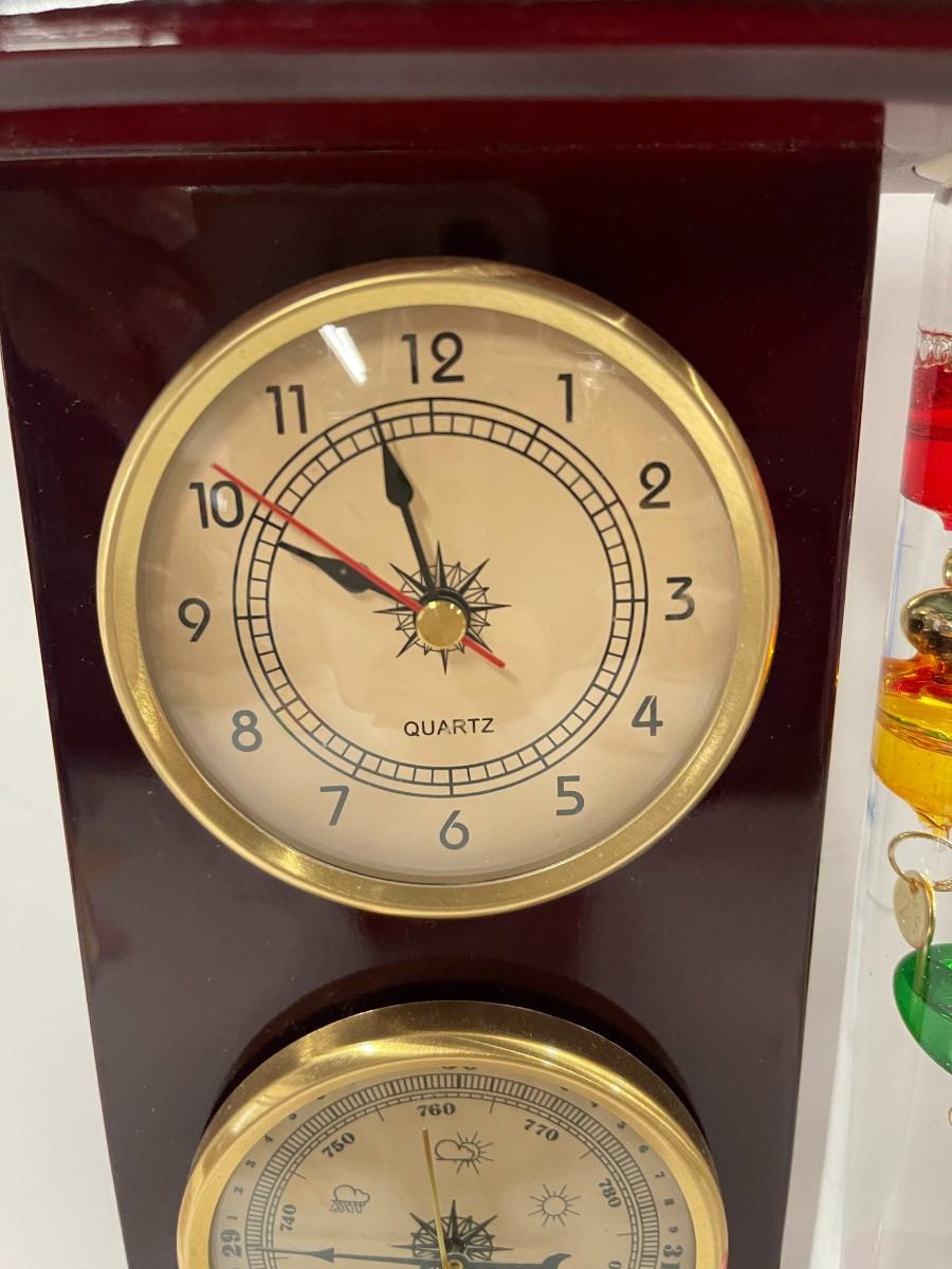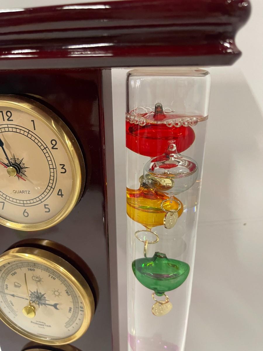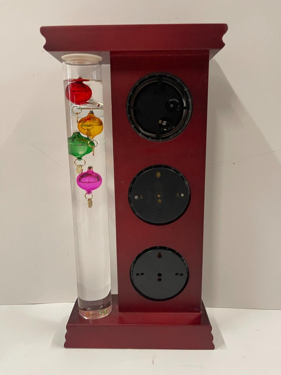 Analog Weather Station with Galileo Thermometer. Needs new batteries, untested. 6" x 12"