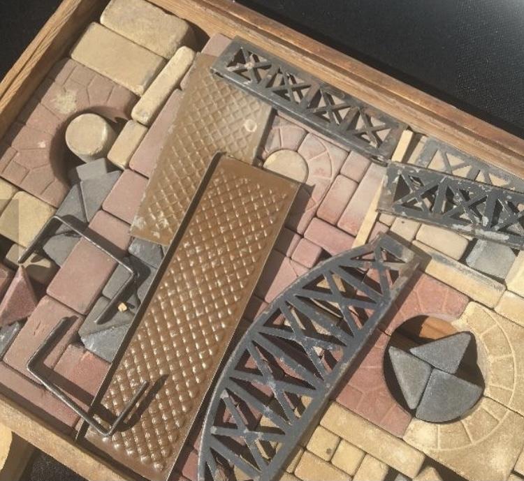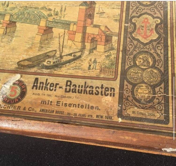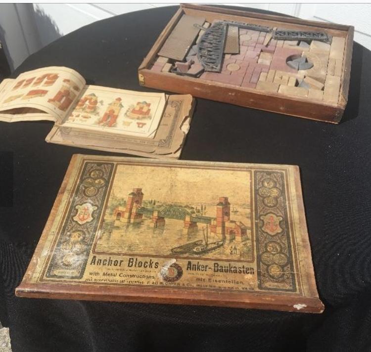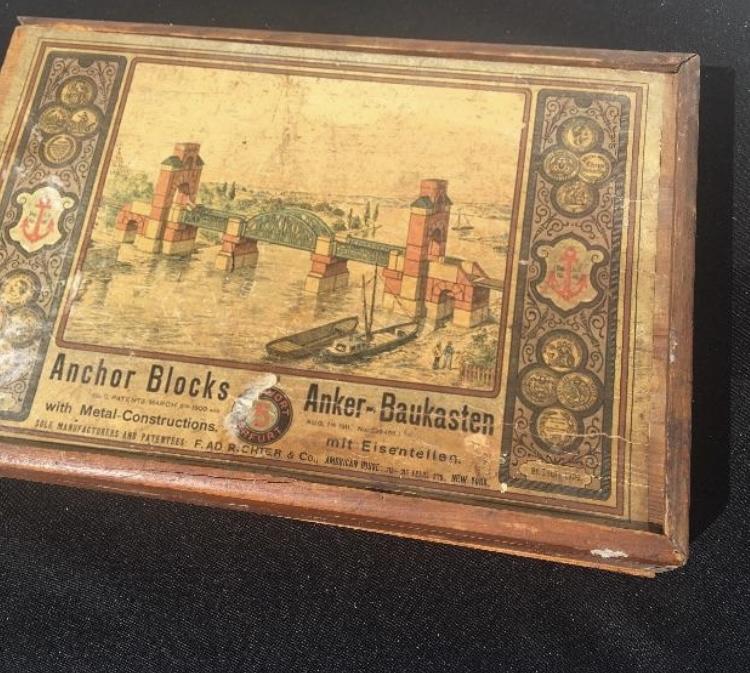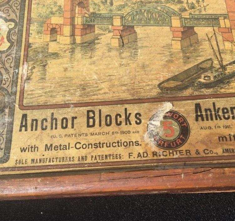 Anchor Block complete building set from early 1900s with original box 14 x 9.5”