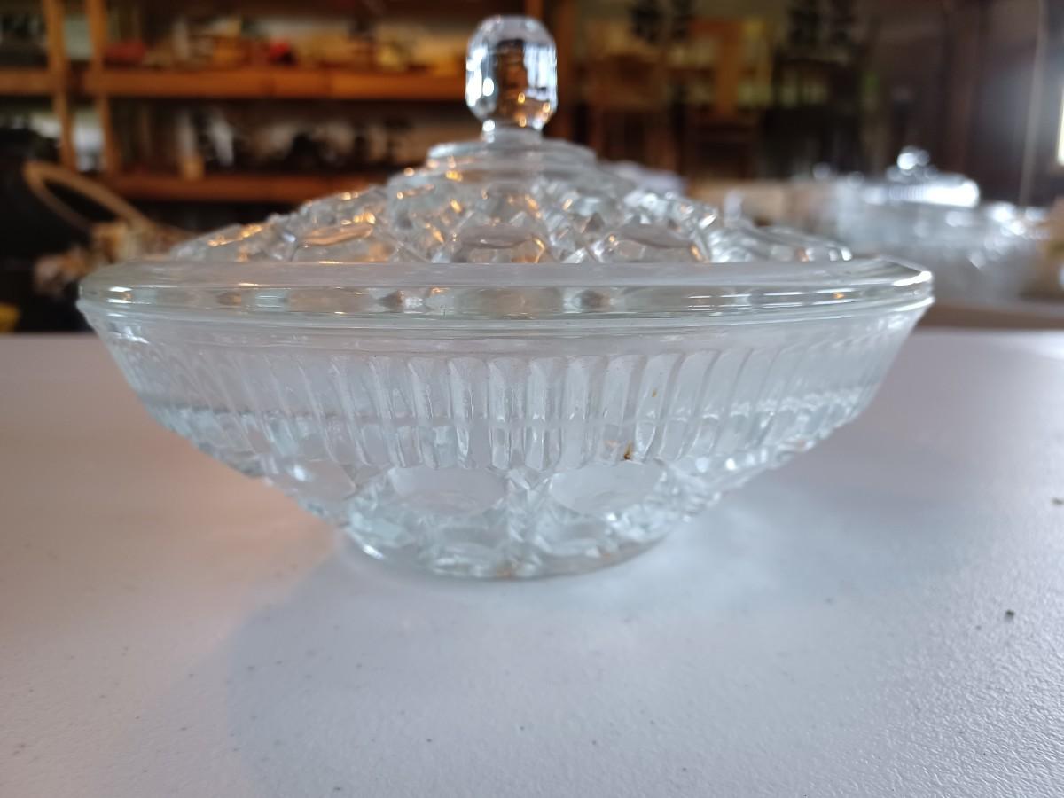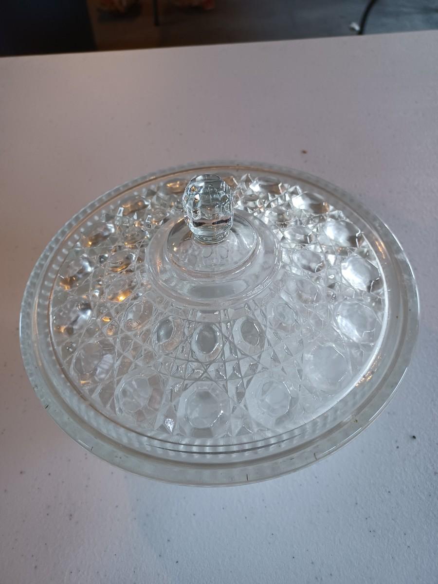 Anchor Hocking Diamond Cut Glass Covered Candy/Nut Dish