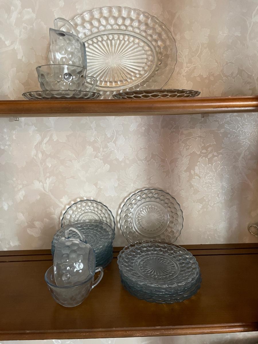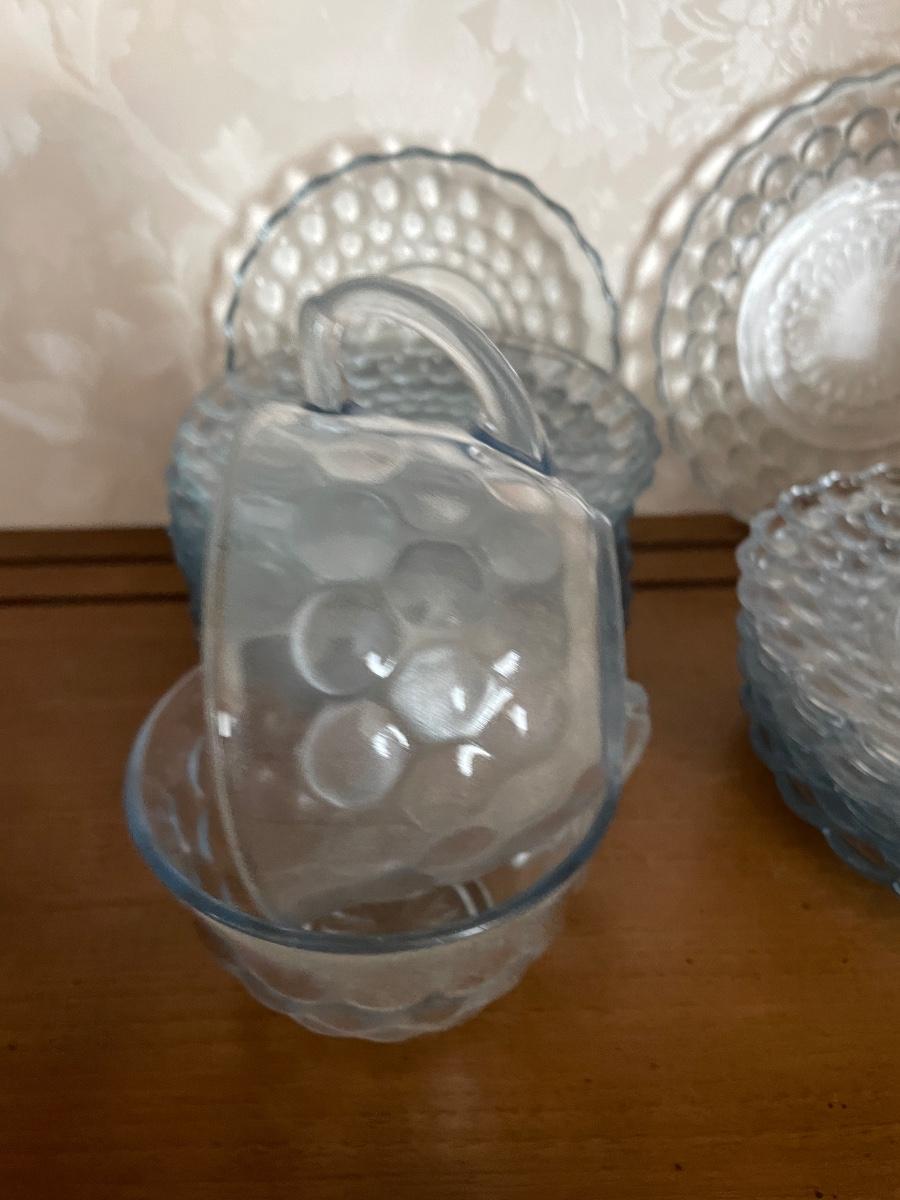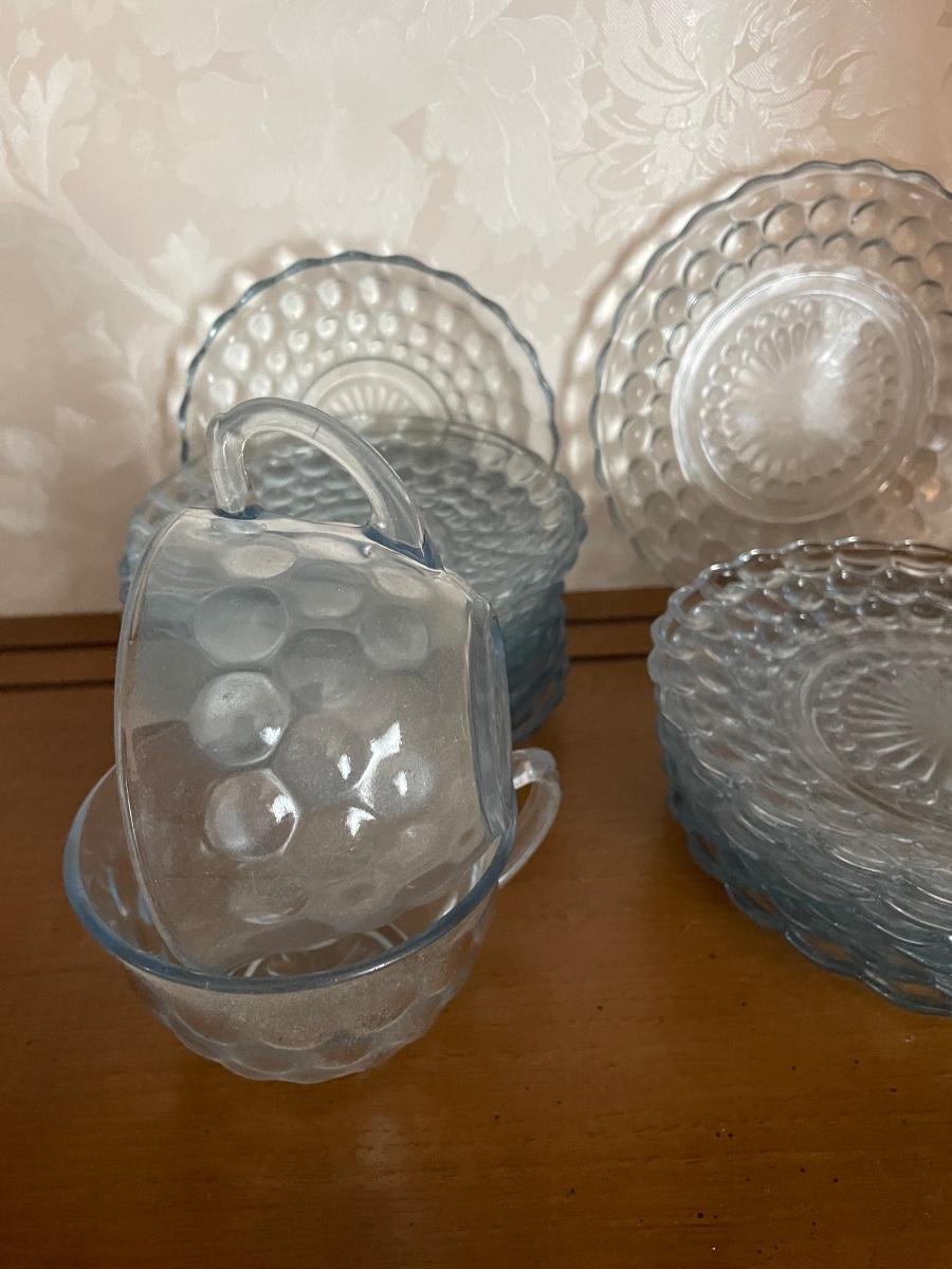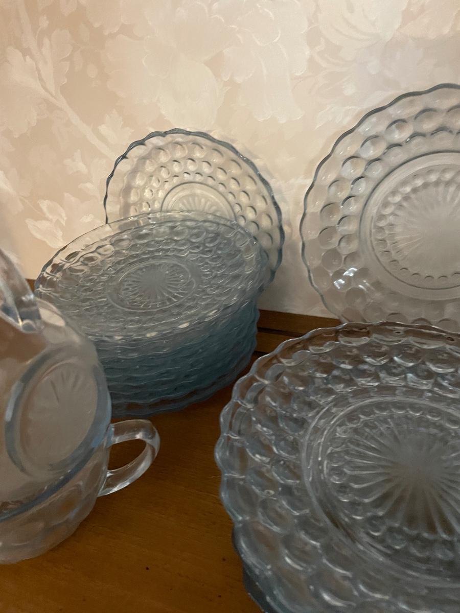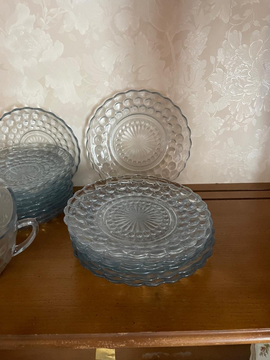 EIGHT PLACE SETTING ANCHOR HOCKING LIGHT BLUE BUBBLE GLASS DINNERWARE