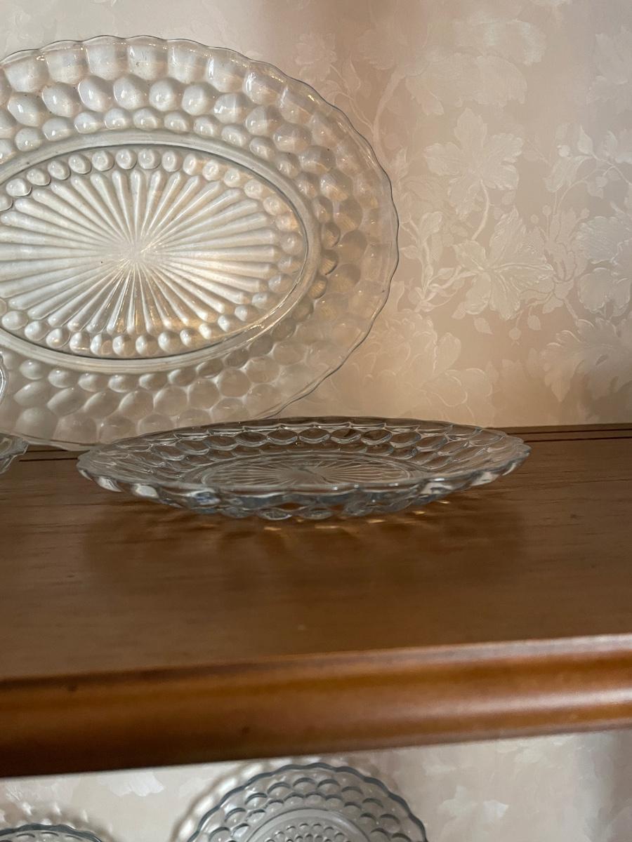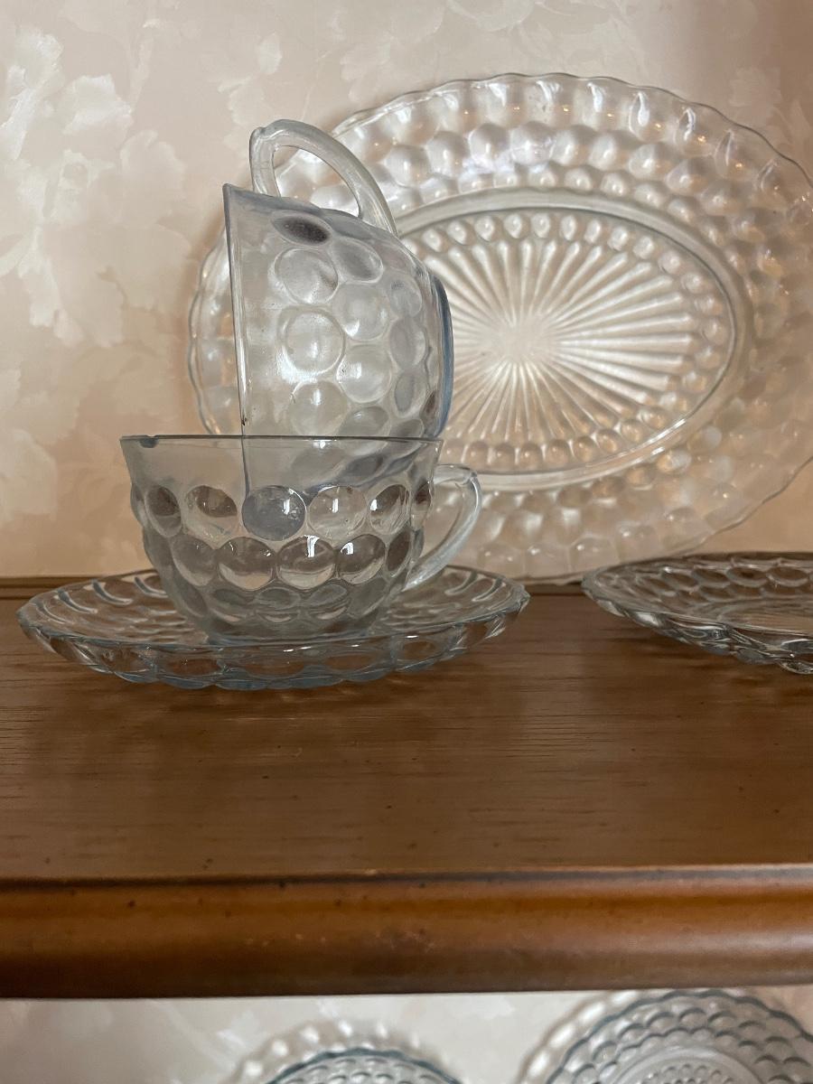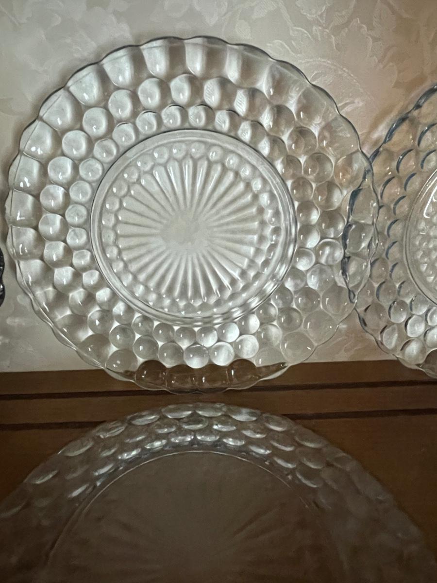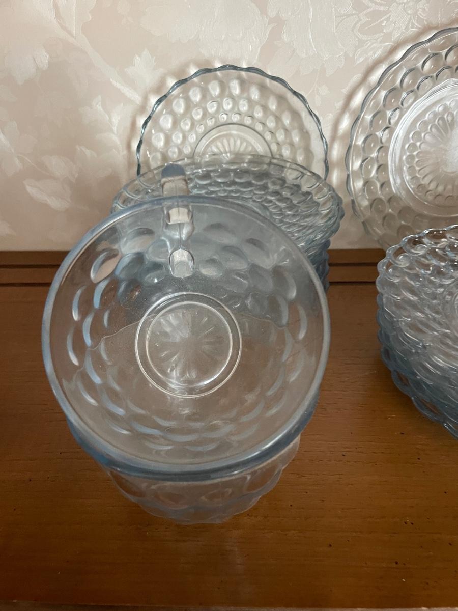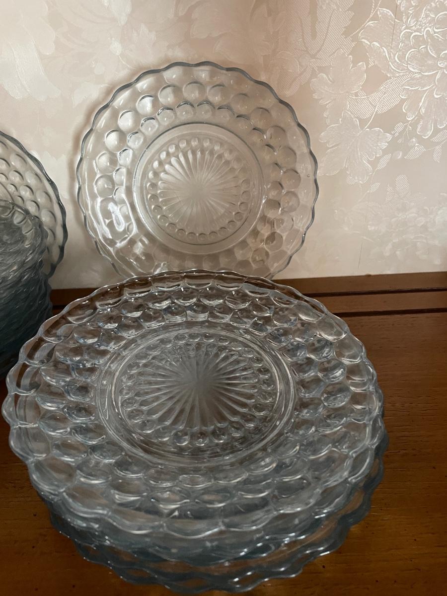EIGHT PLACE SETTING ANCHOR HOCKING LIGHT BLUE BUBBLE GLASS DINNERWARE