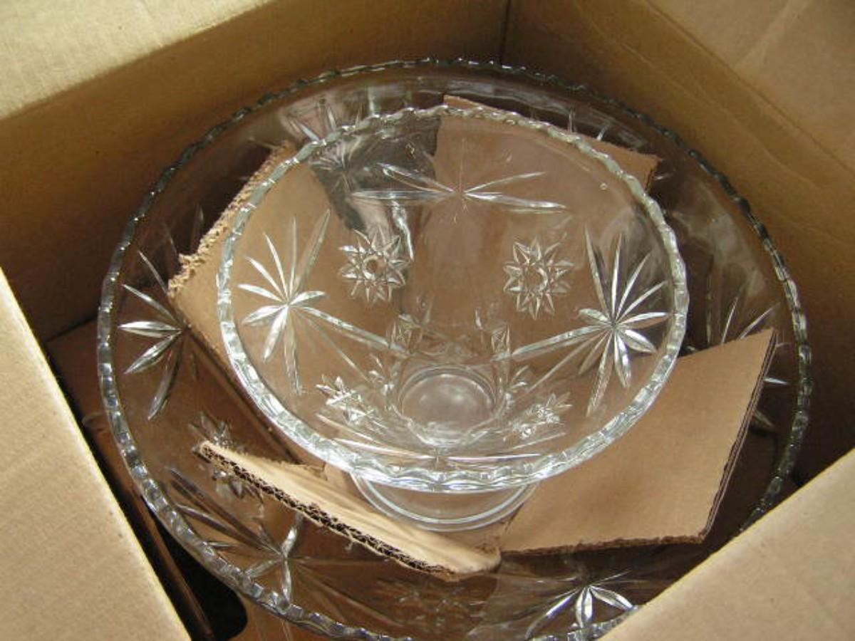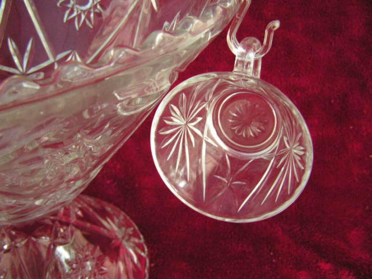 Anchor Hocking c.1960s prescut crystal punch bowl set w/12 cups