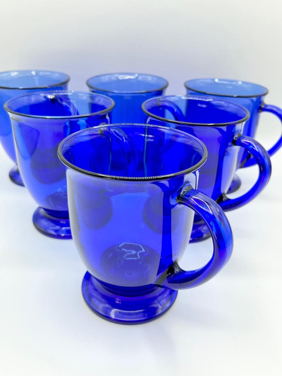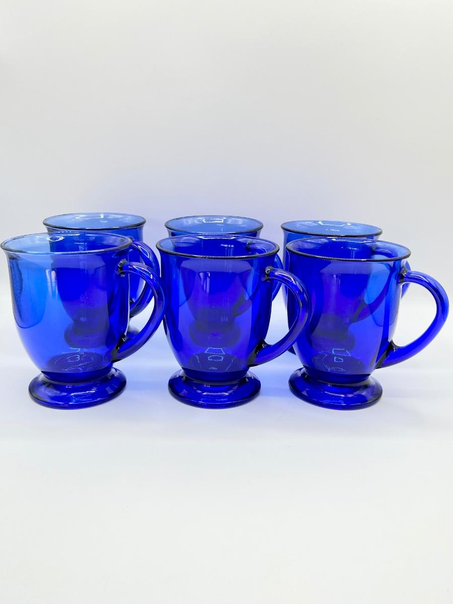 ANCHOR HOCKING ~ Cafe Cobalt Blue Mugs ~ Set Of Six (6)