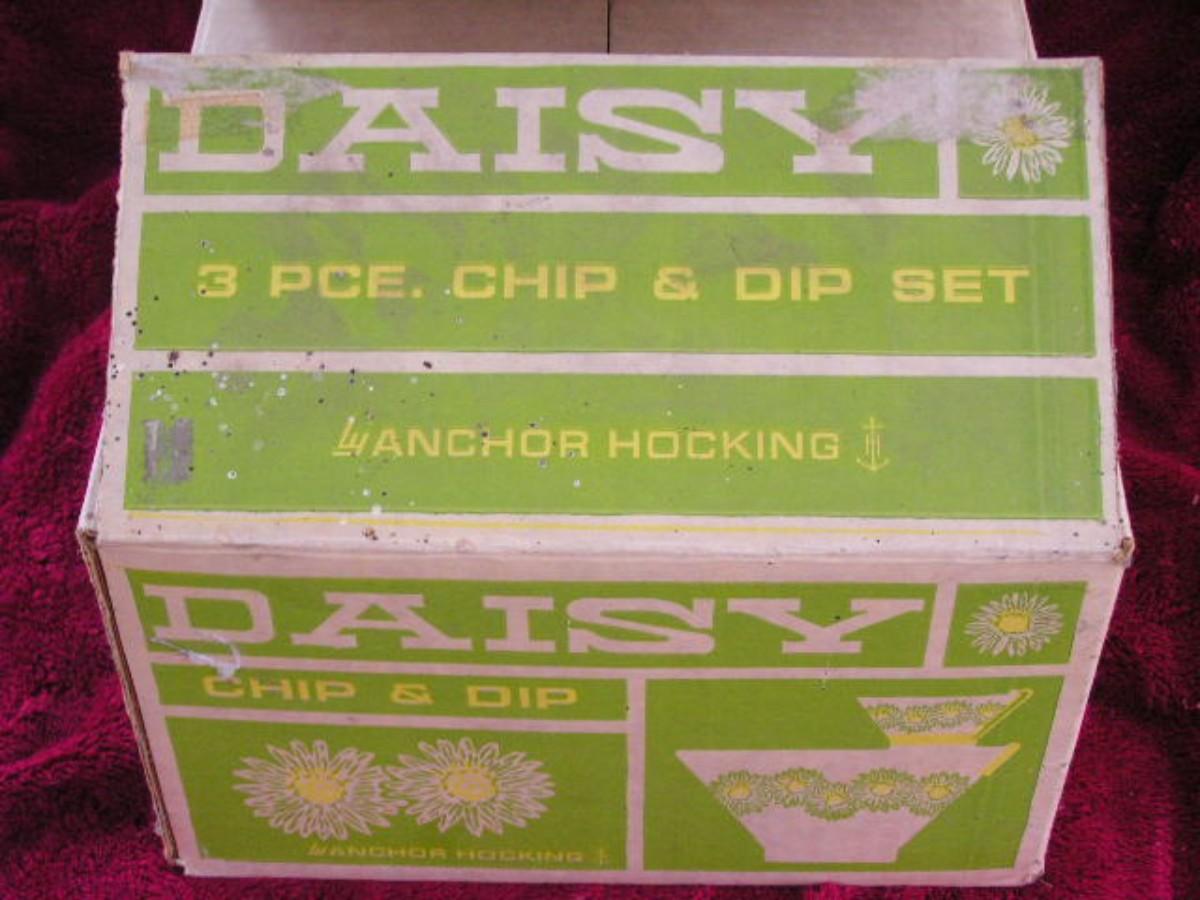 Anchor Hocking “Chip & Dip” set, mid century vintage. In the OEM box. Looks unused.