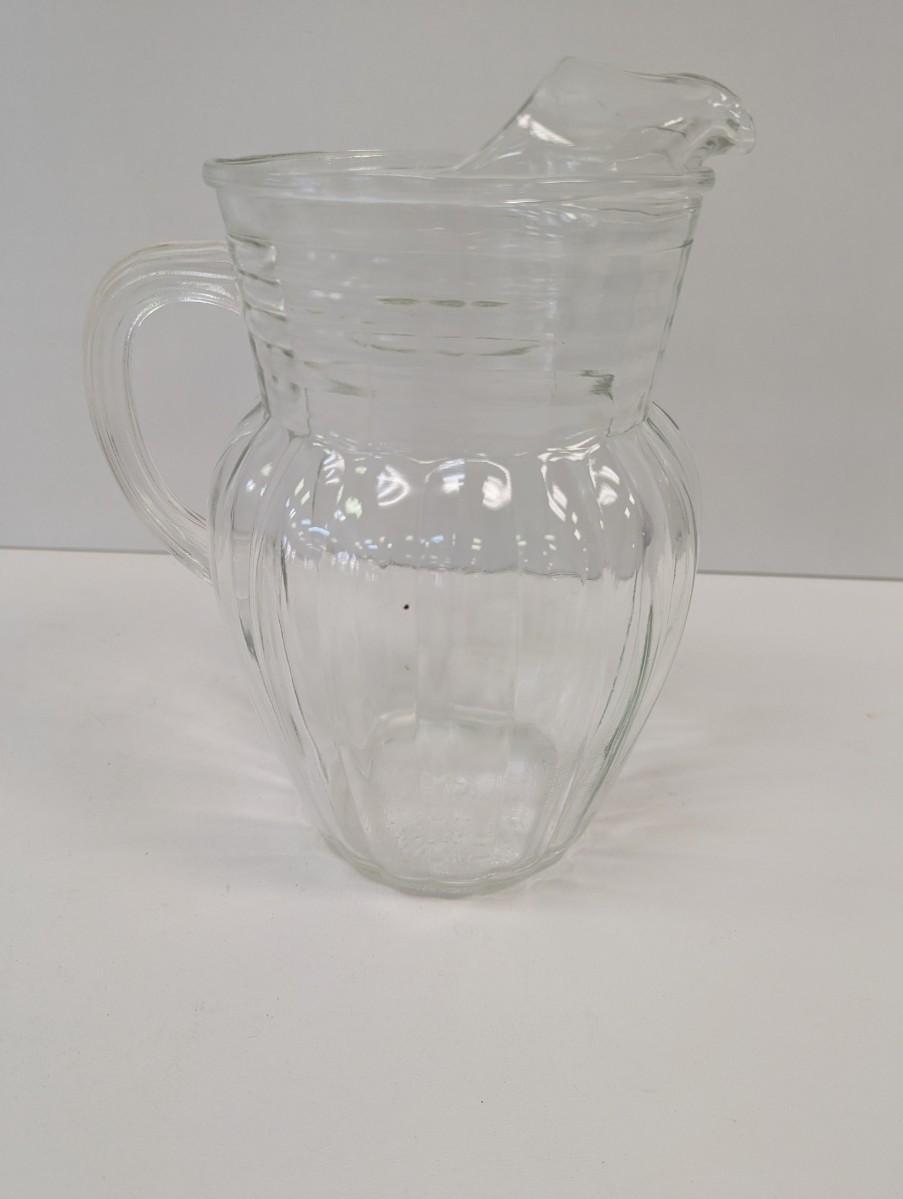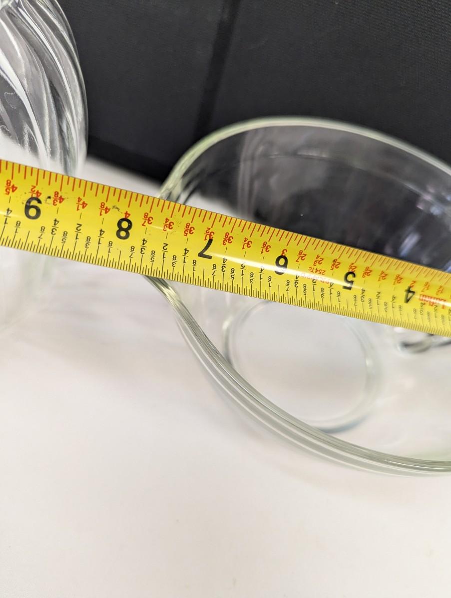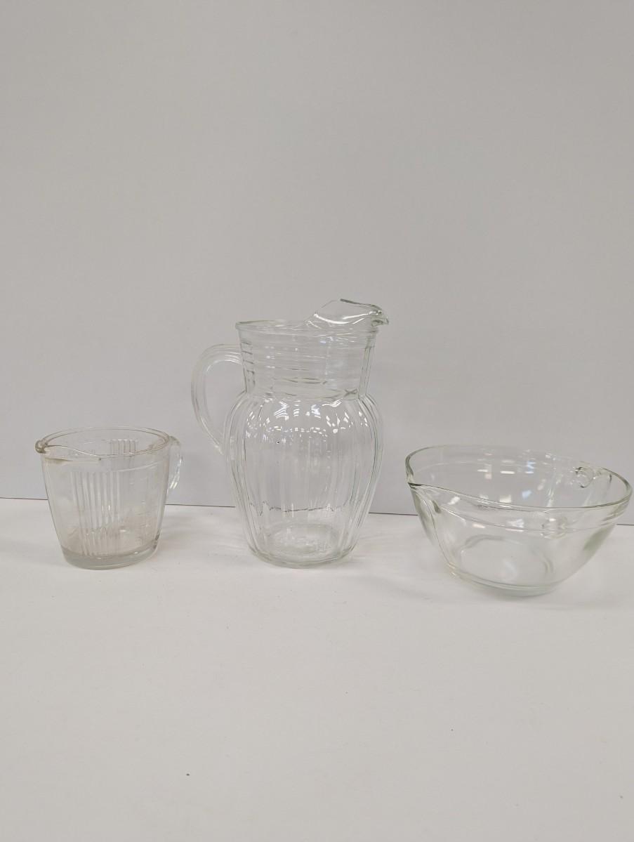 Anchor Hocking Clear Optic Pitcher Ringed Rib Top Band USA Mixing Bowl With Handle & Spout & Measuring Cup