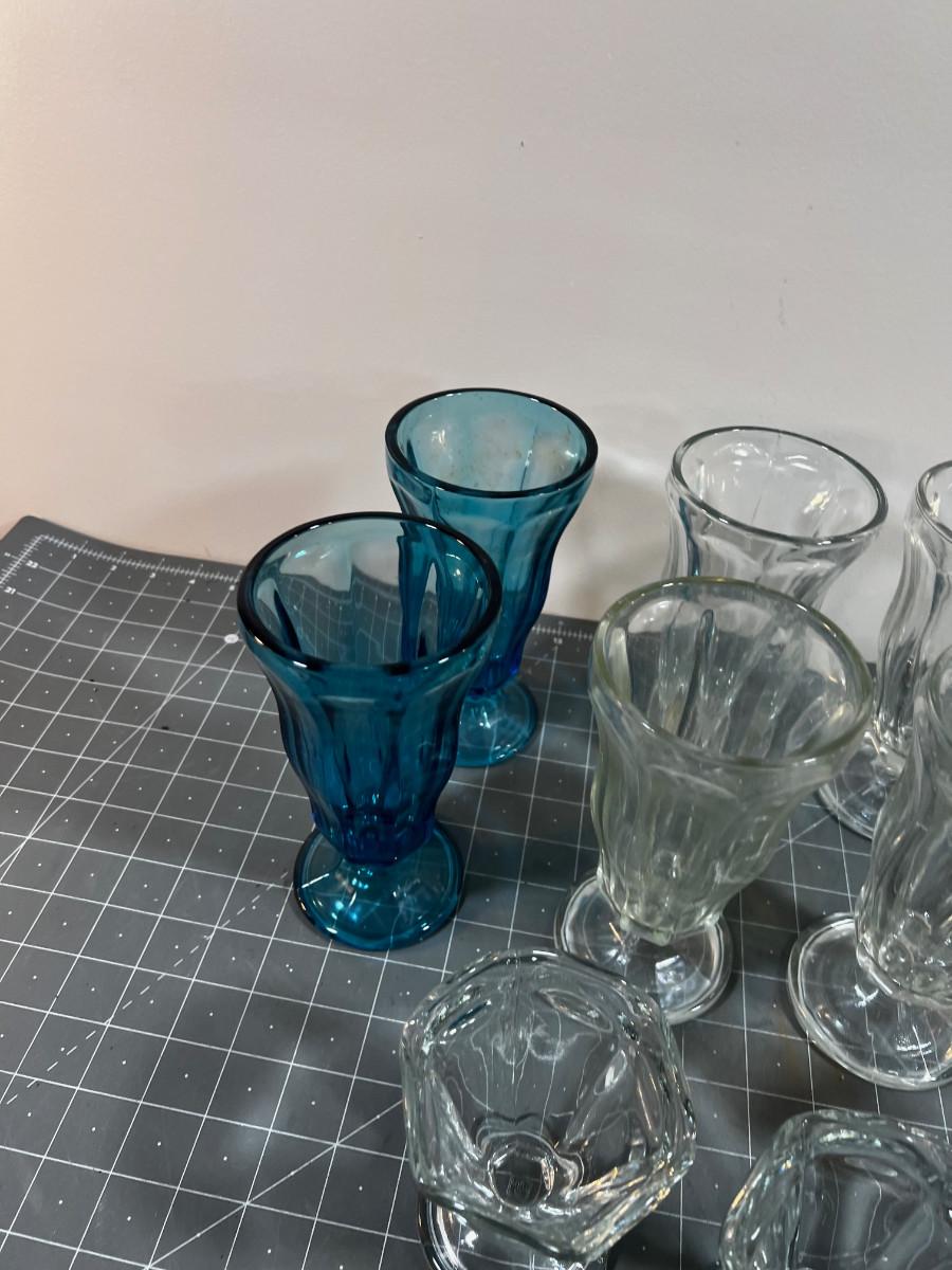 2 sizes and 2 colors. USED 10 Total Glasses. These Glasses might make a good upcycle candle crafting moment?