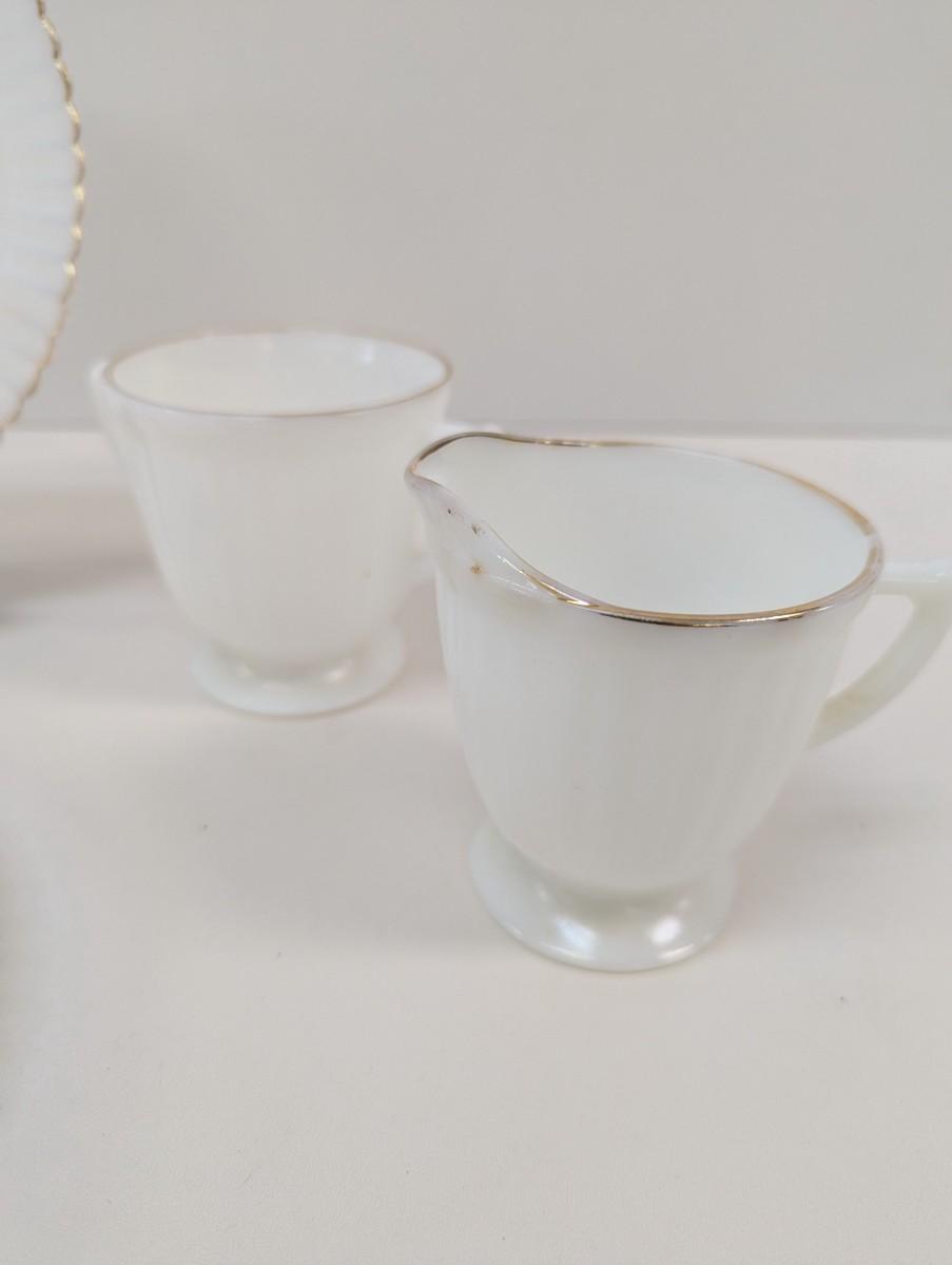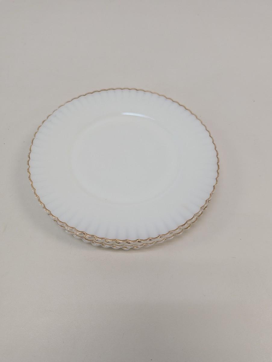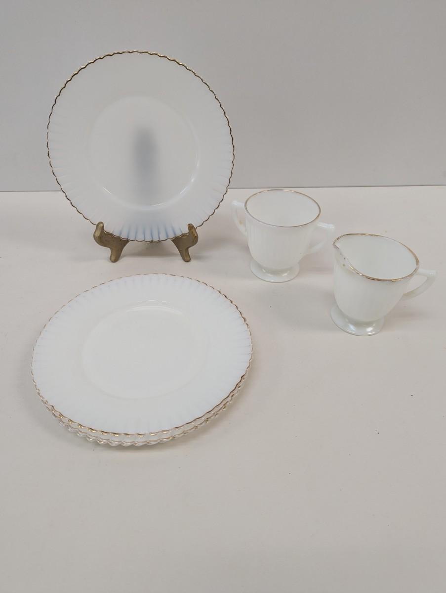 Anchor Hocking Fire King Milk Glass Gold Trim USA