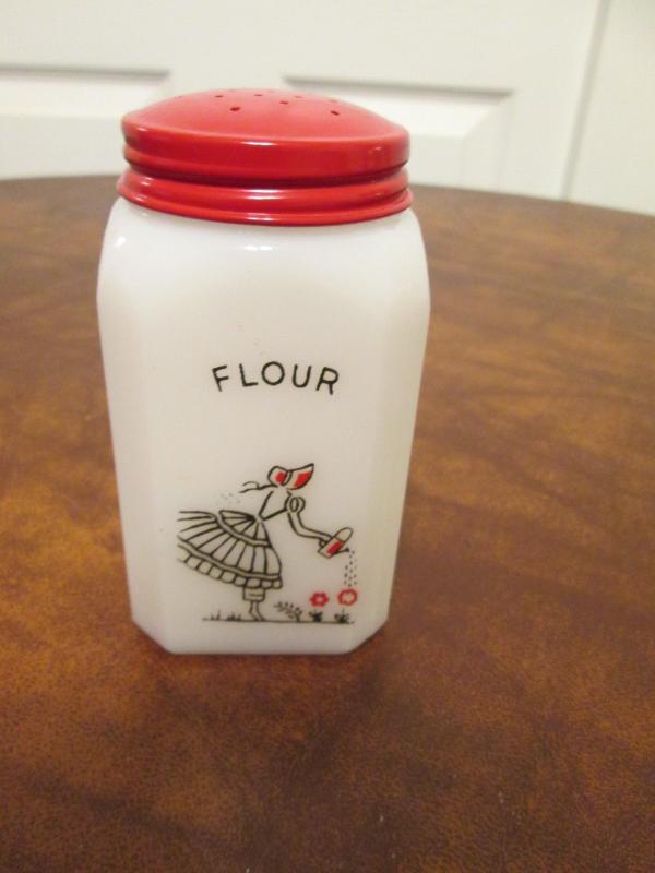 Anchor Hocking Flour Shaker - Lady Watering Flowers