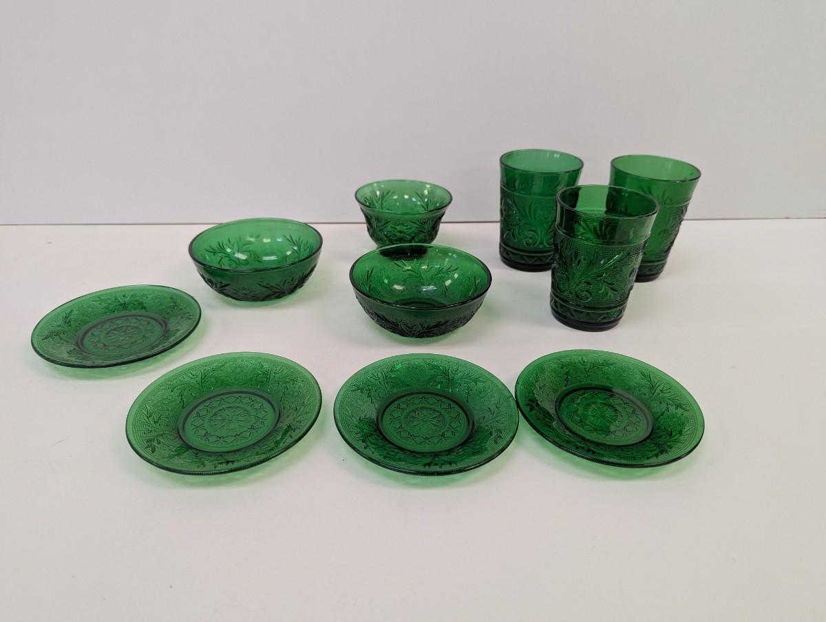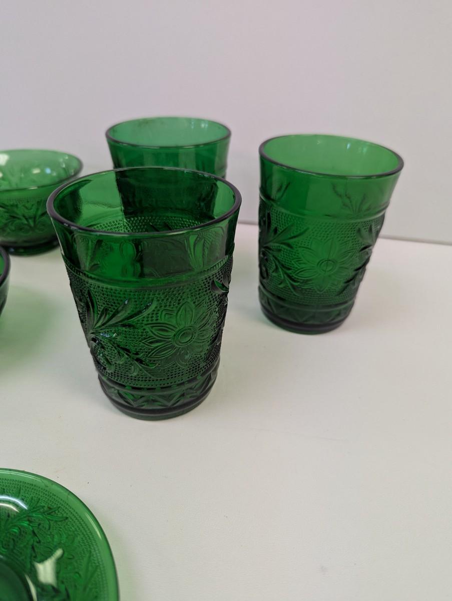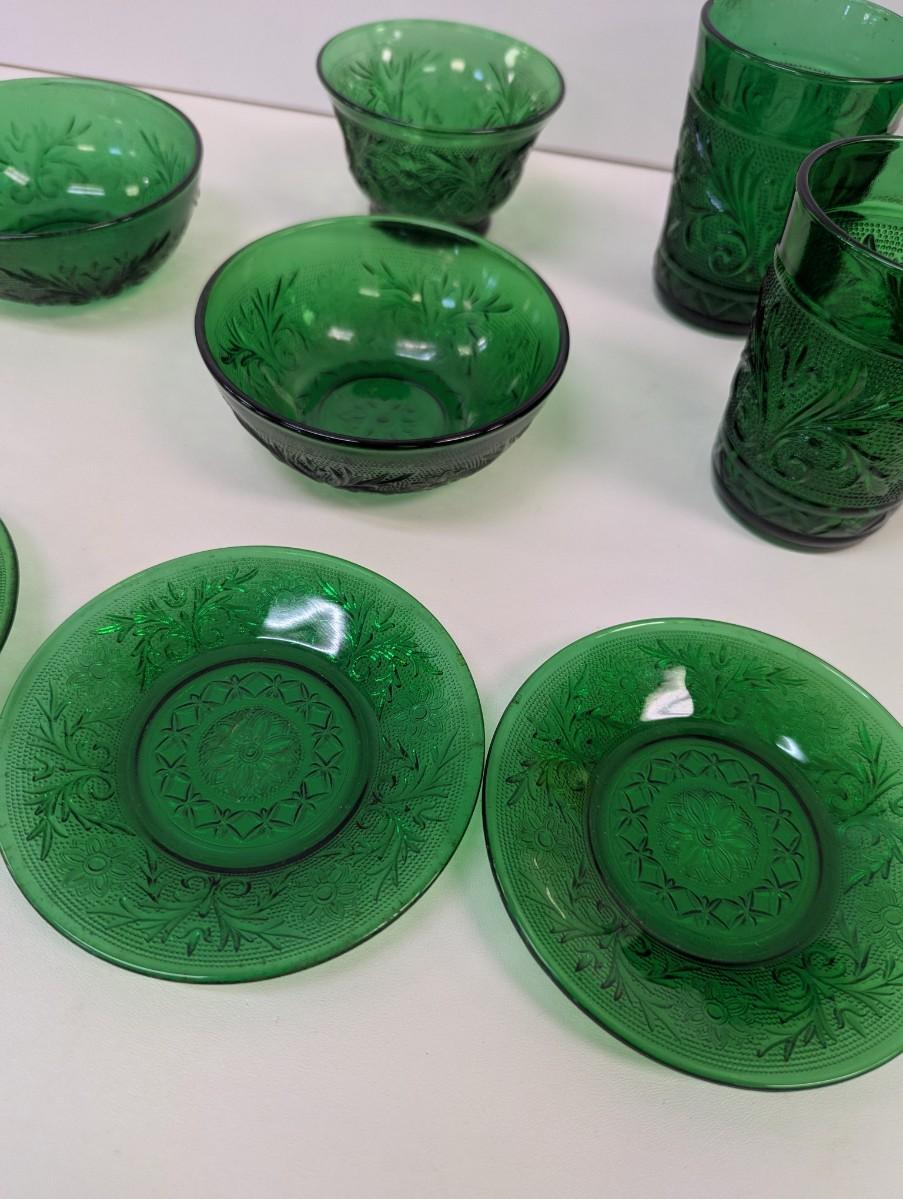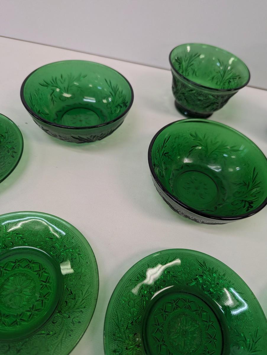Anchor Hocking Forest Green Sandwich Plates Bowls & Glasses #41