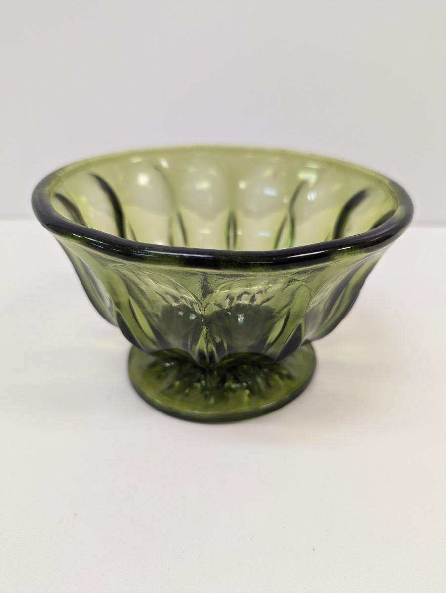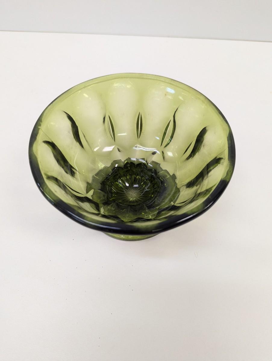 Approx 6" Anchor Hocking Glass Fairfield Avocado Bowl Pressed Footed Candy Dish