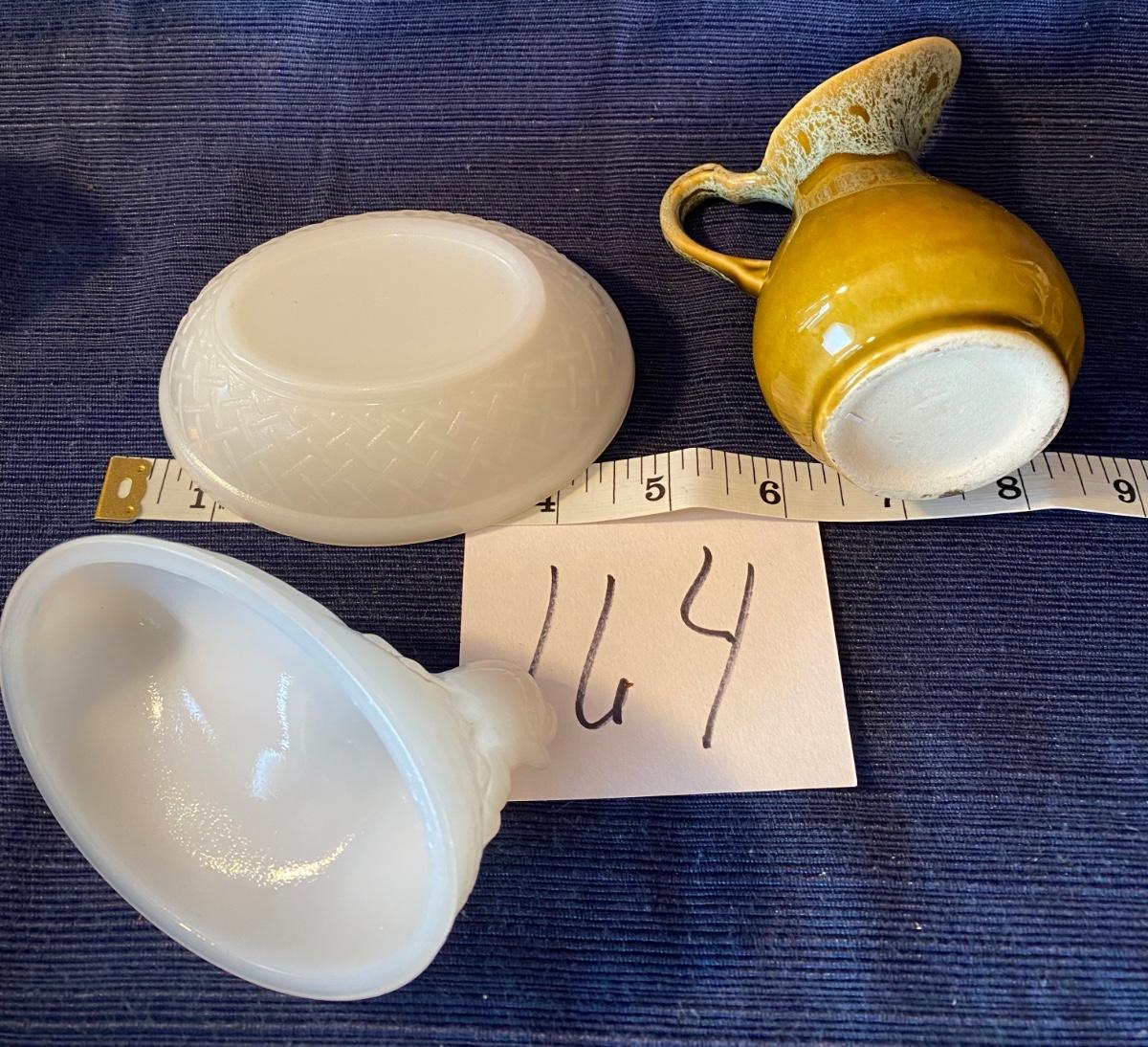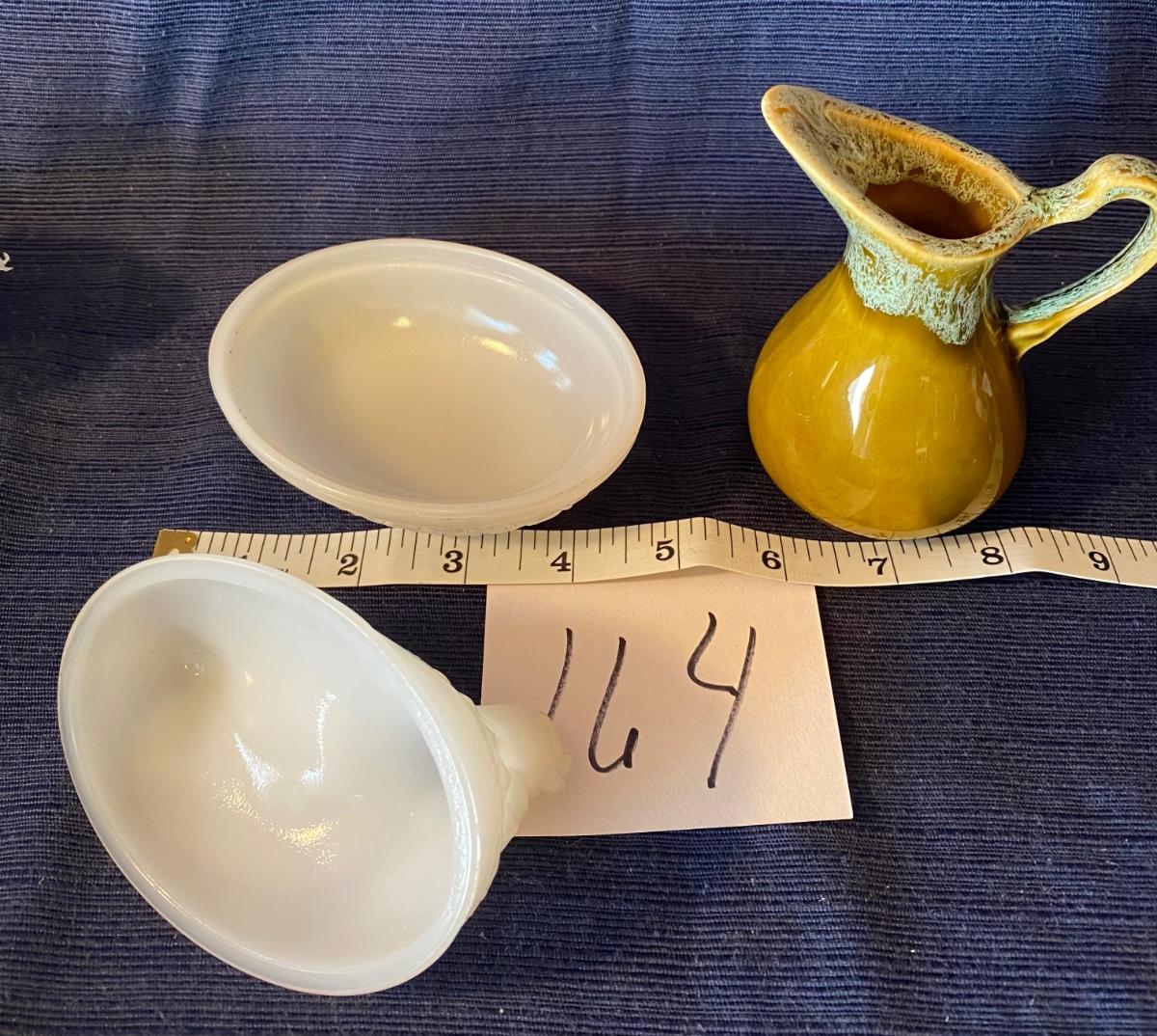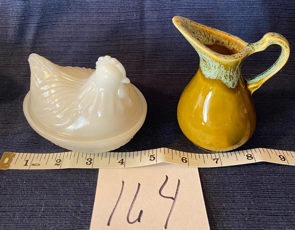 Anchor Hocking Hen on Nest and Vintage Miniature Pitcher