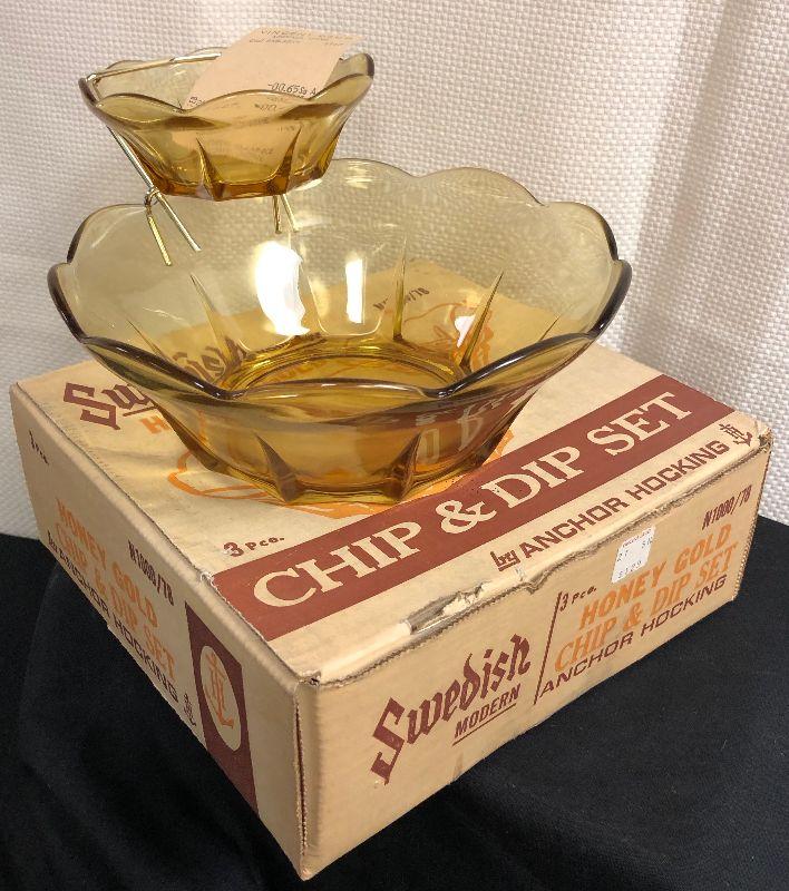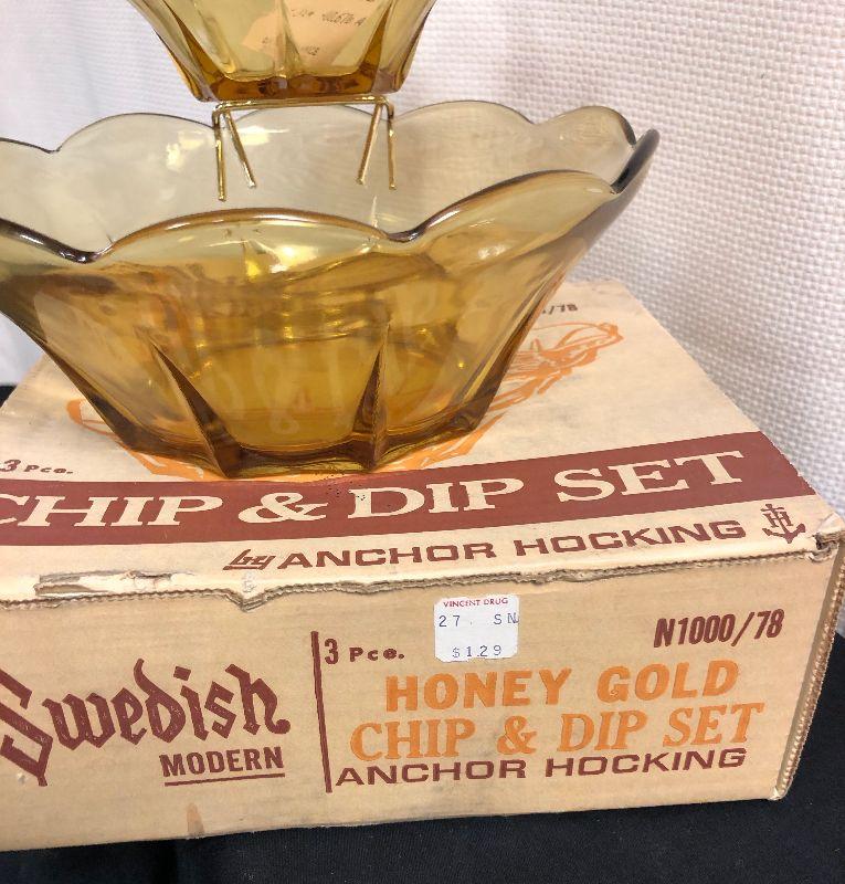 Anchor Hocking Honey Gold Chip and Dip set