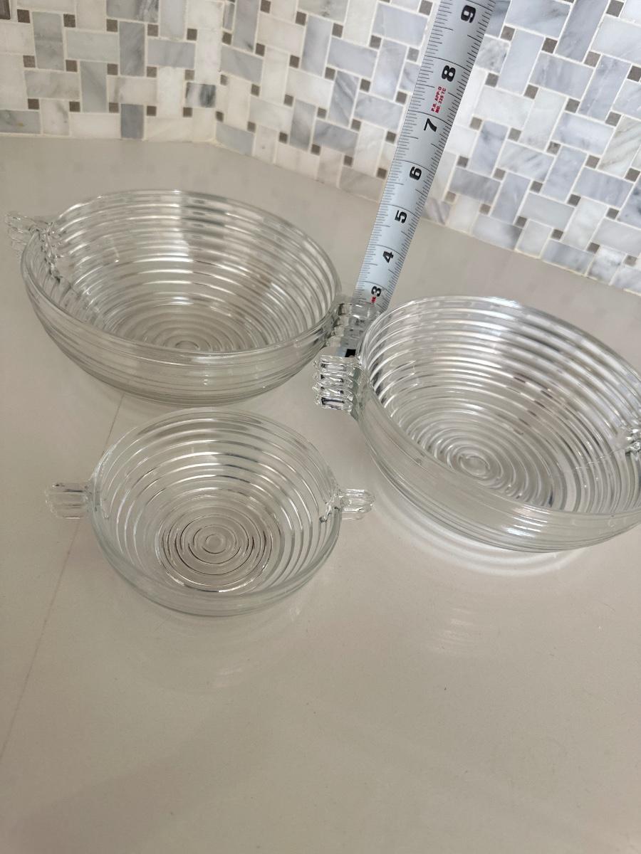 Anchor Hocking Manhattan Clear Set of 3 Bowls Art Deco ribbed glass Graduating sizes Lot 2