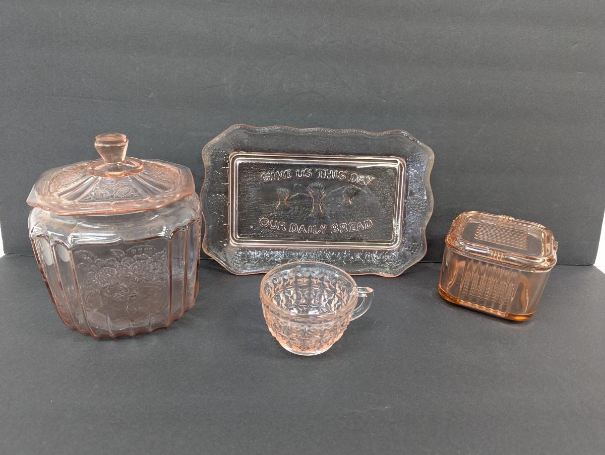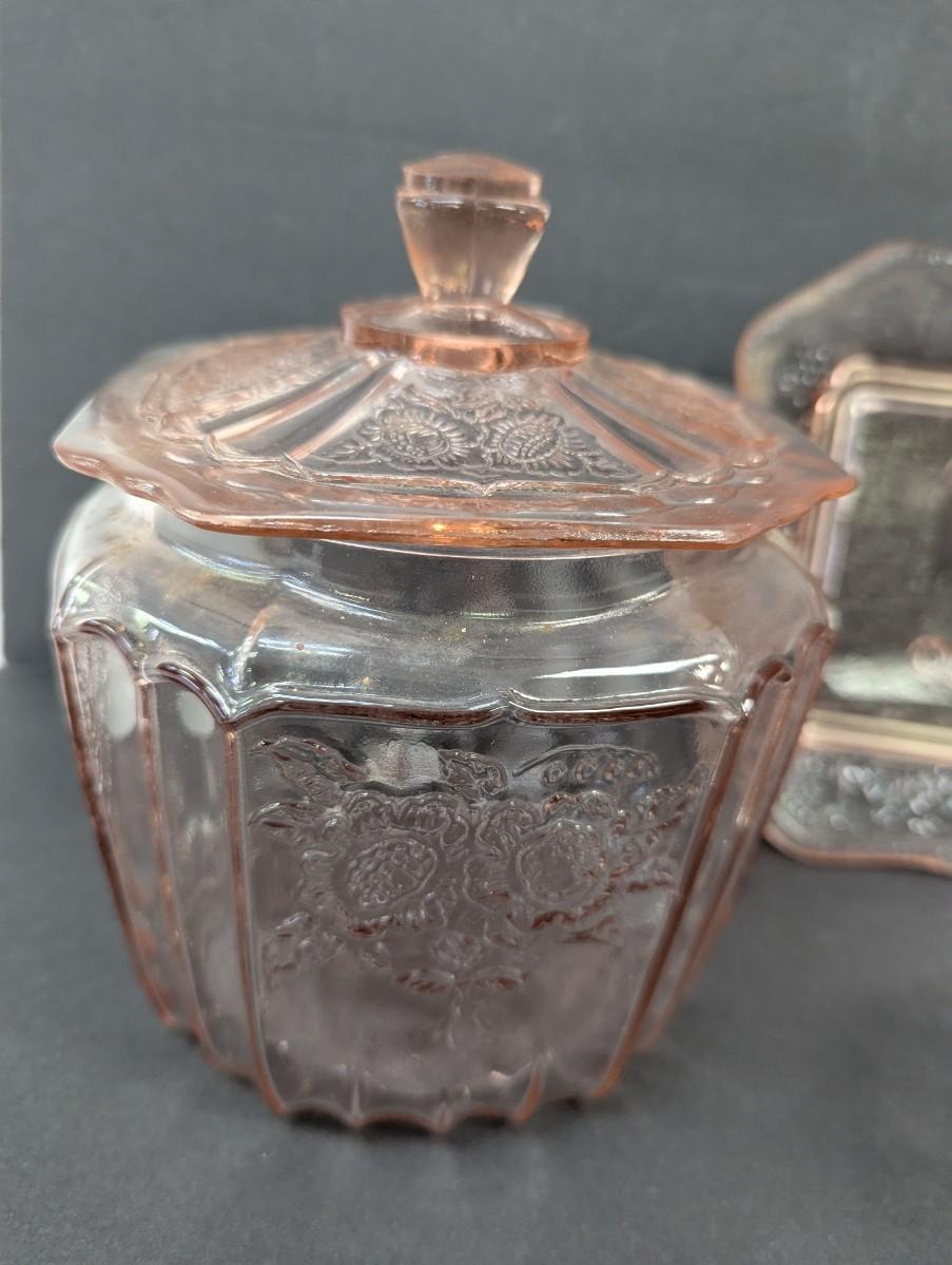 Anchor Hocking Mayfair Open Rose Pink Depression Glass Biscuit Jar Federal Glass Covered Dish Tiara Indiana Glass Platter #44