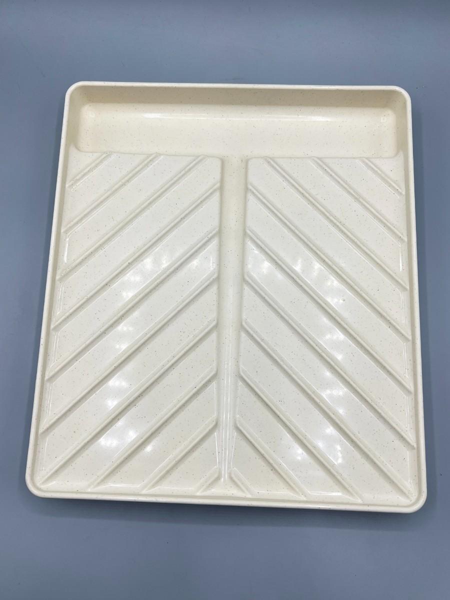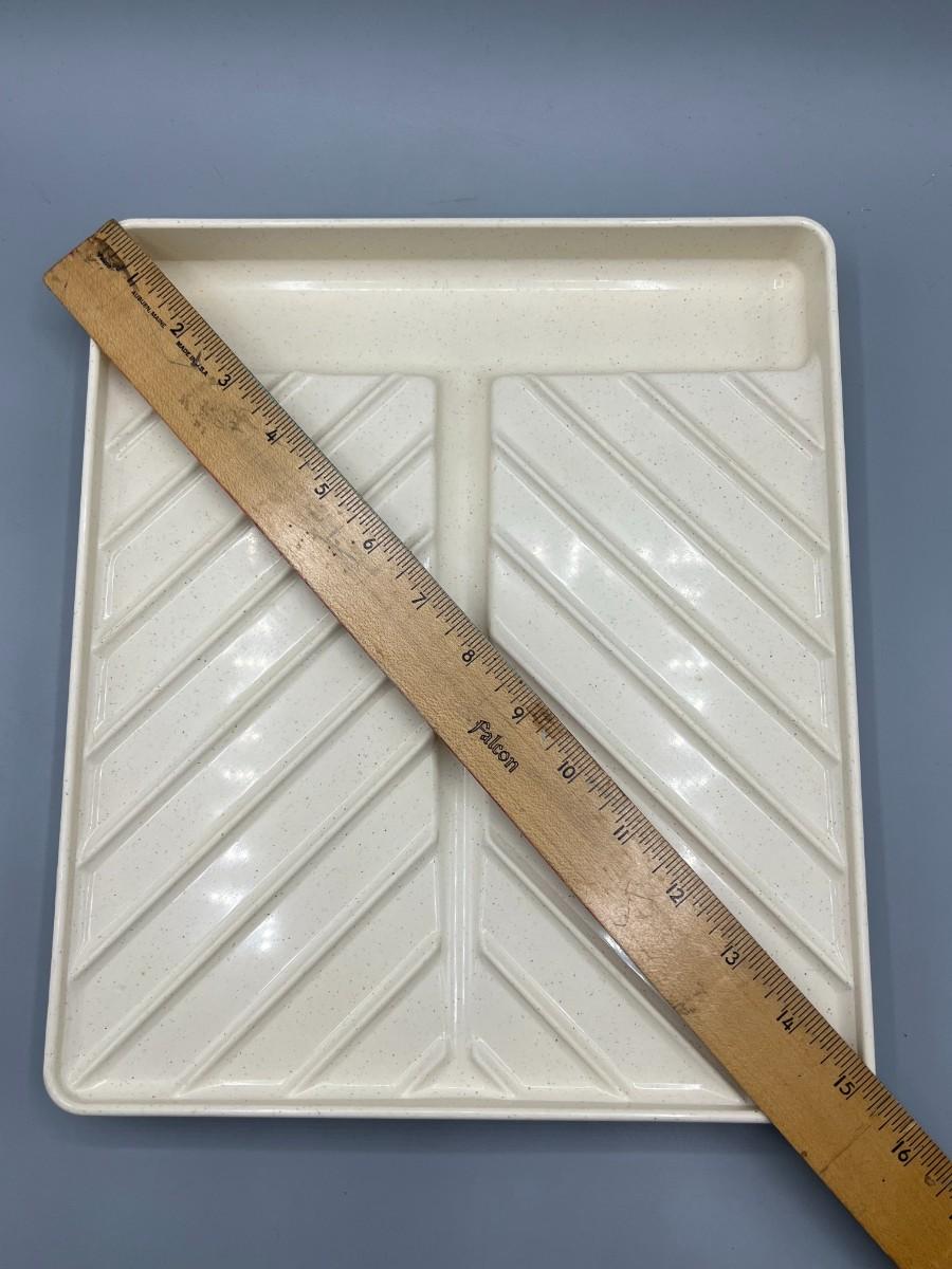 There is no significant damage to the tray and is in good useable condition. Check pictures for more details and for sizing.