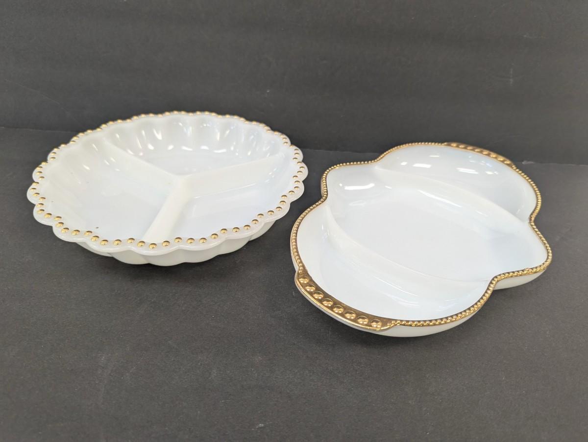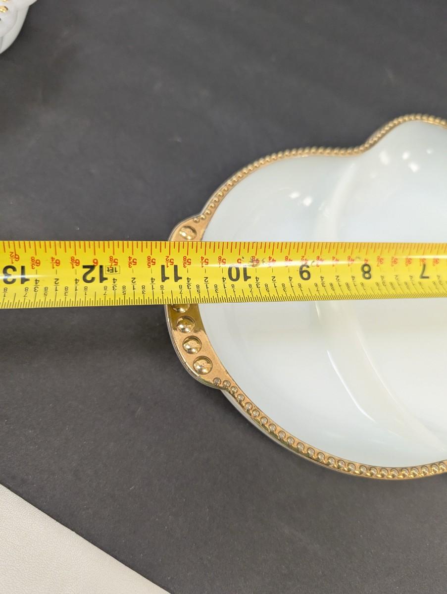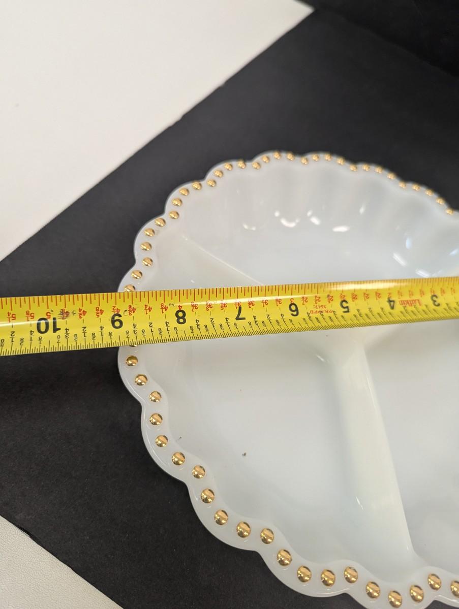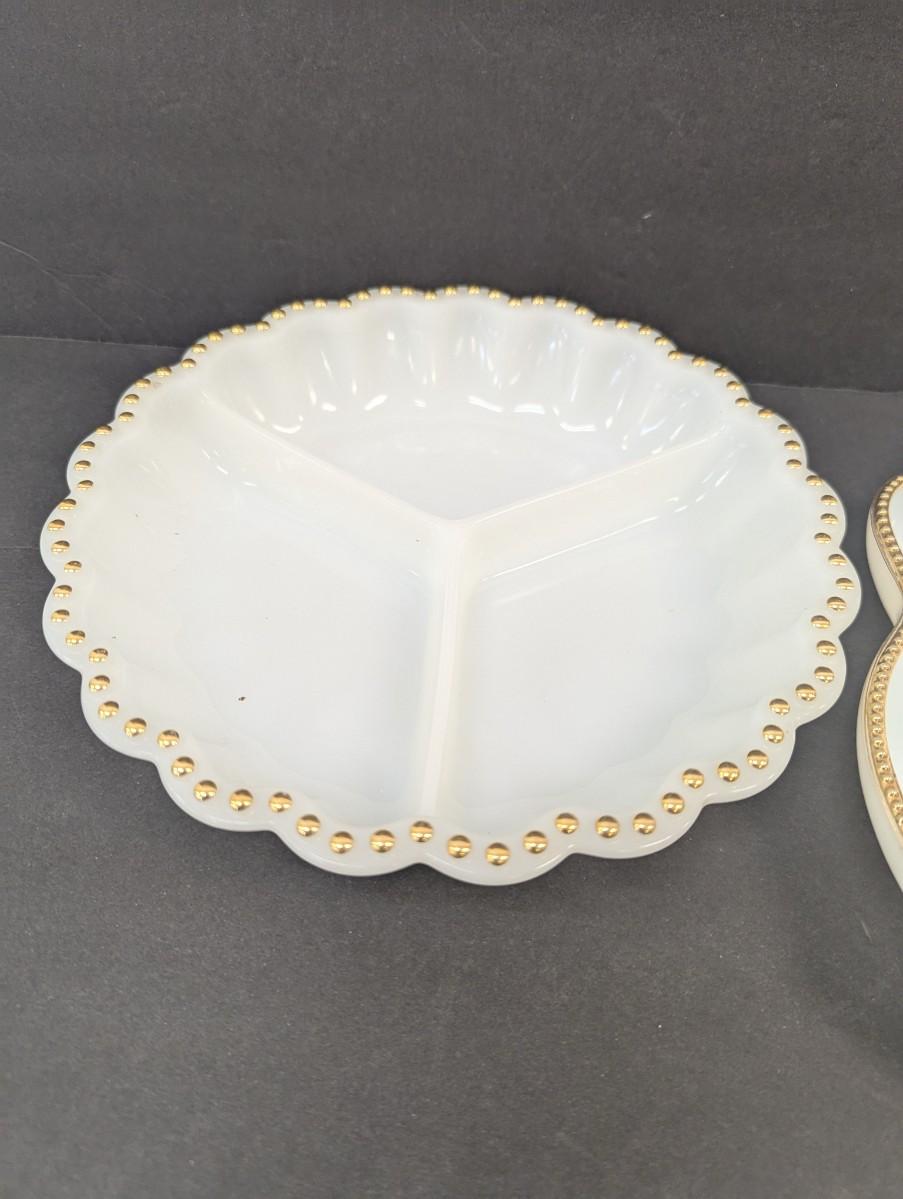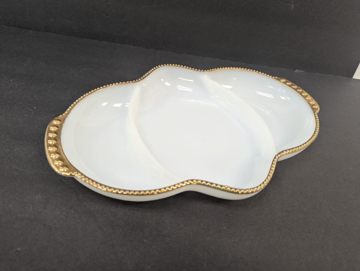 Anchor Hocking Milk Glass Hobnail Trim Divided Serving & Relish Dish