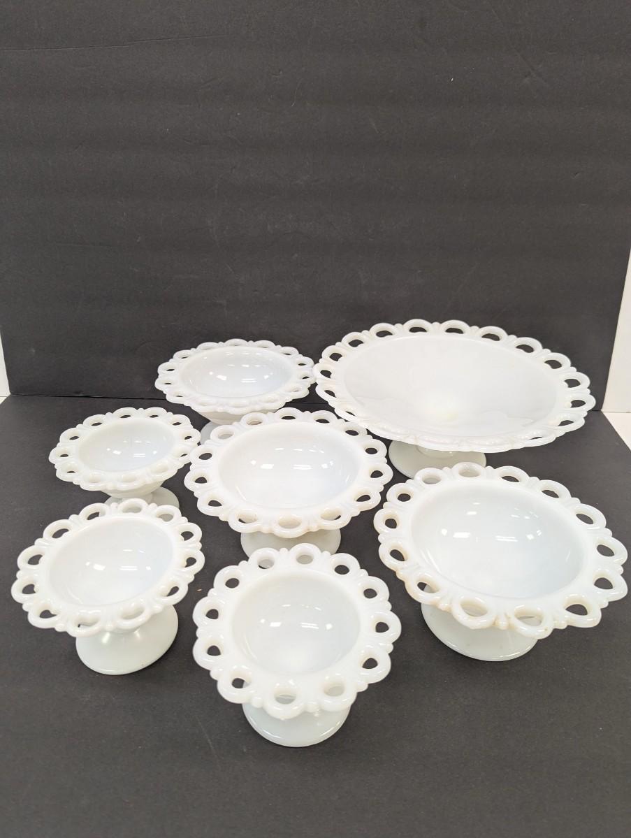 Anchor Hocking Old Colony Milk Glass Pedestal Compote Candy Dishes #45