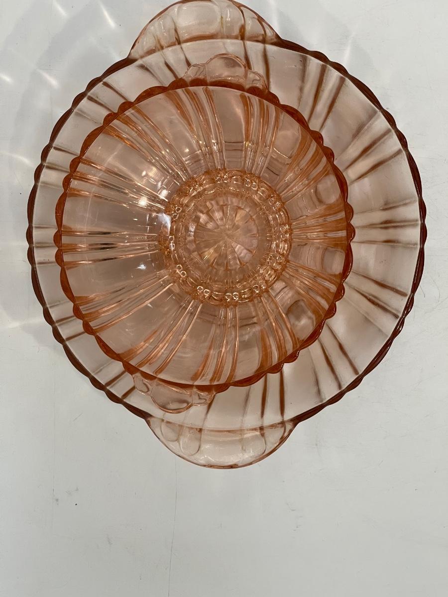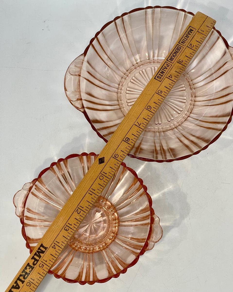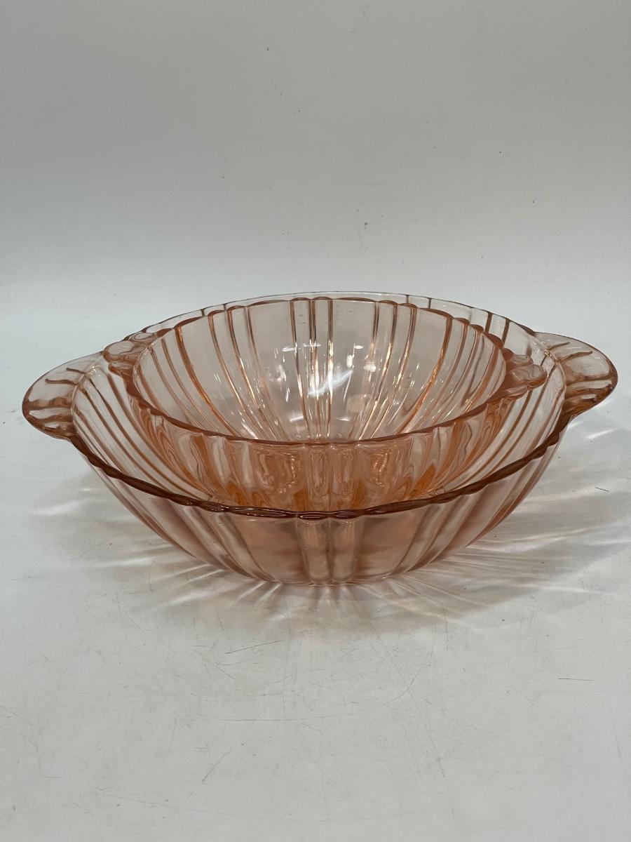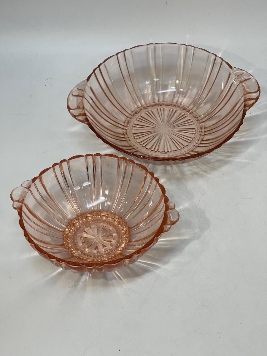 Anchor Hocking Pink Depression glass bowls 6” & 8" Serving Bowls with Handles