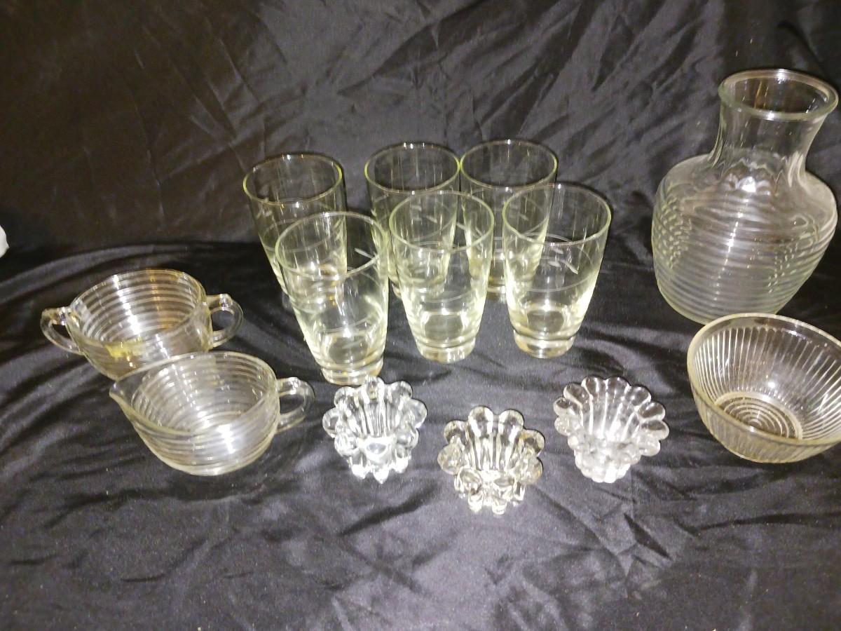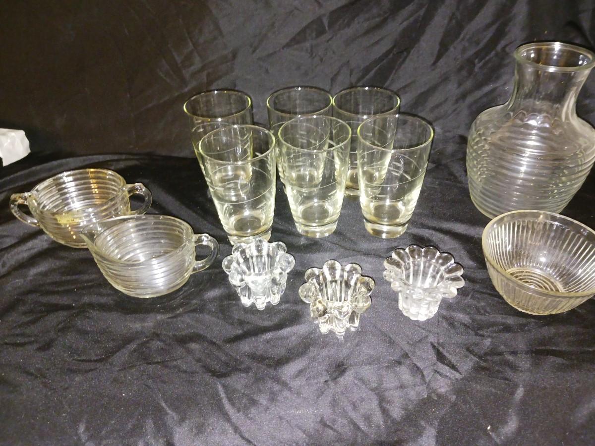 ANCHOR HOCKING PITCHER AND OTHER PRETTY GLASSESARE