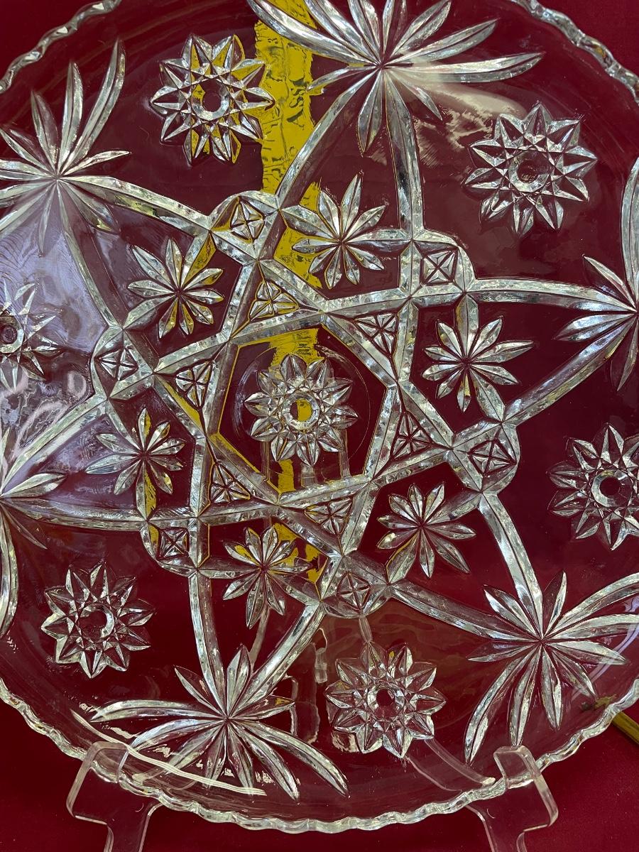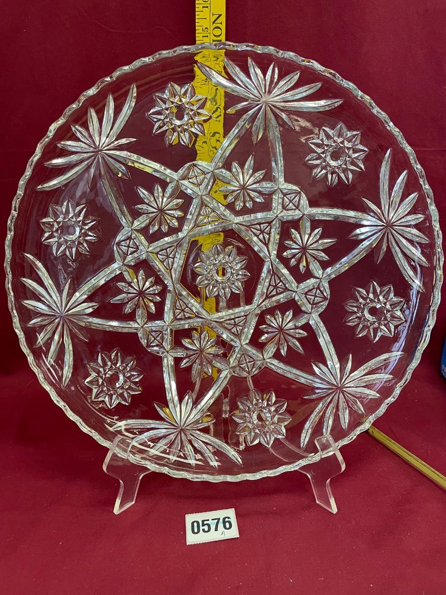 Anchor Hocking prescut EAPG clear glass 13 1/2”