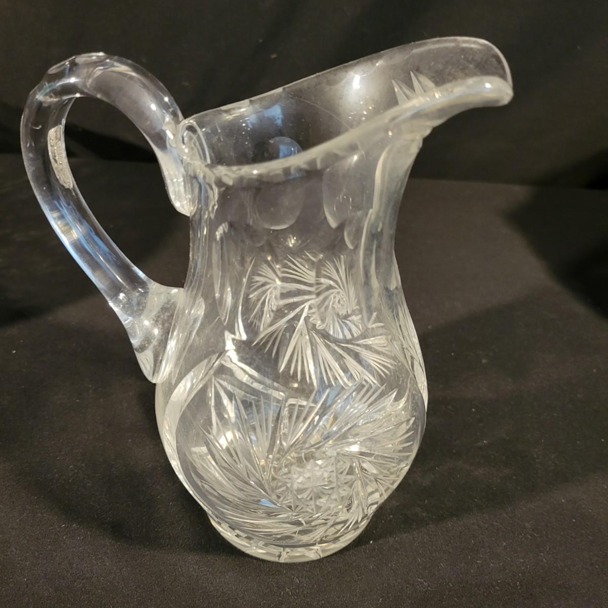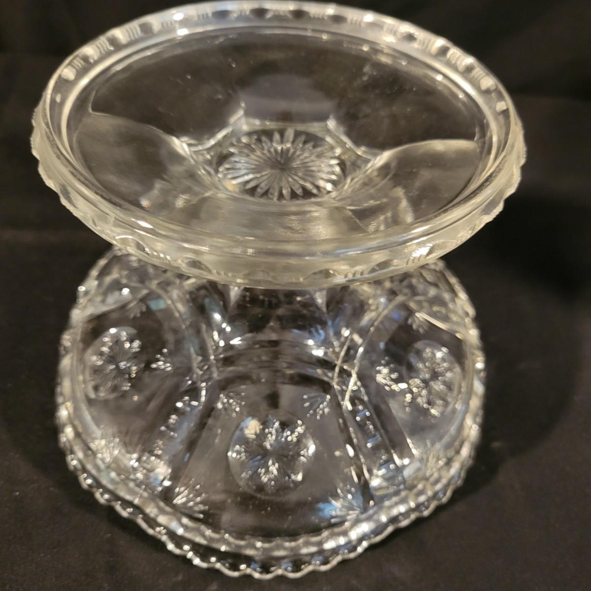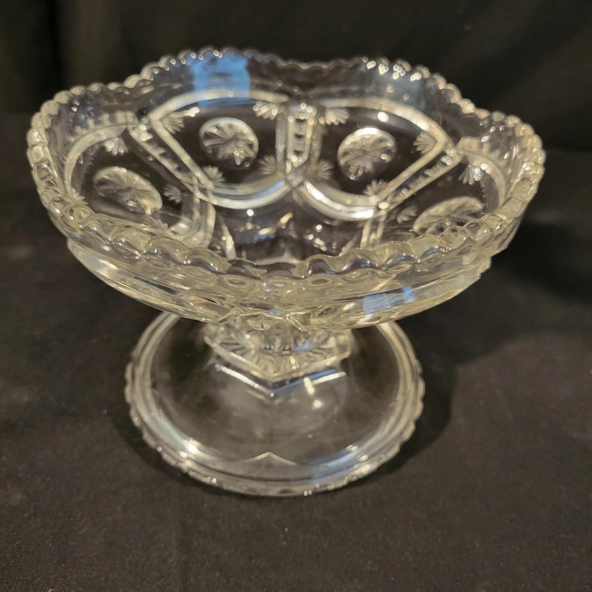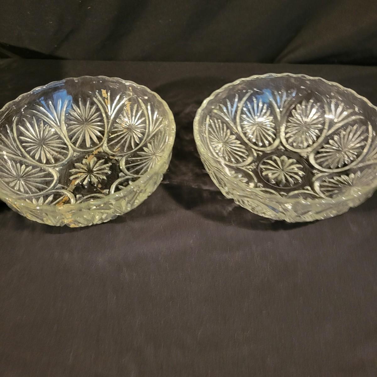 A collection of 10 pieces of pressed and cut glass pieces in good condition with no notable chips or damage. Assortment includes pieces manufactured by Anchor Hocking and is an assortment of bowls, dishes, pitchers and more. The largest piece is a footed bowl that measures approximately 12" x 3". We cannot confirm that all item are Anchor Hocking Prescut, but unlabeled items are a similar style. Shipping available