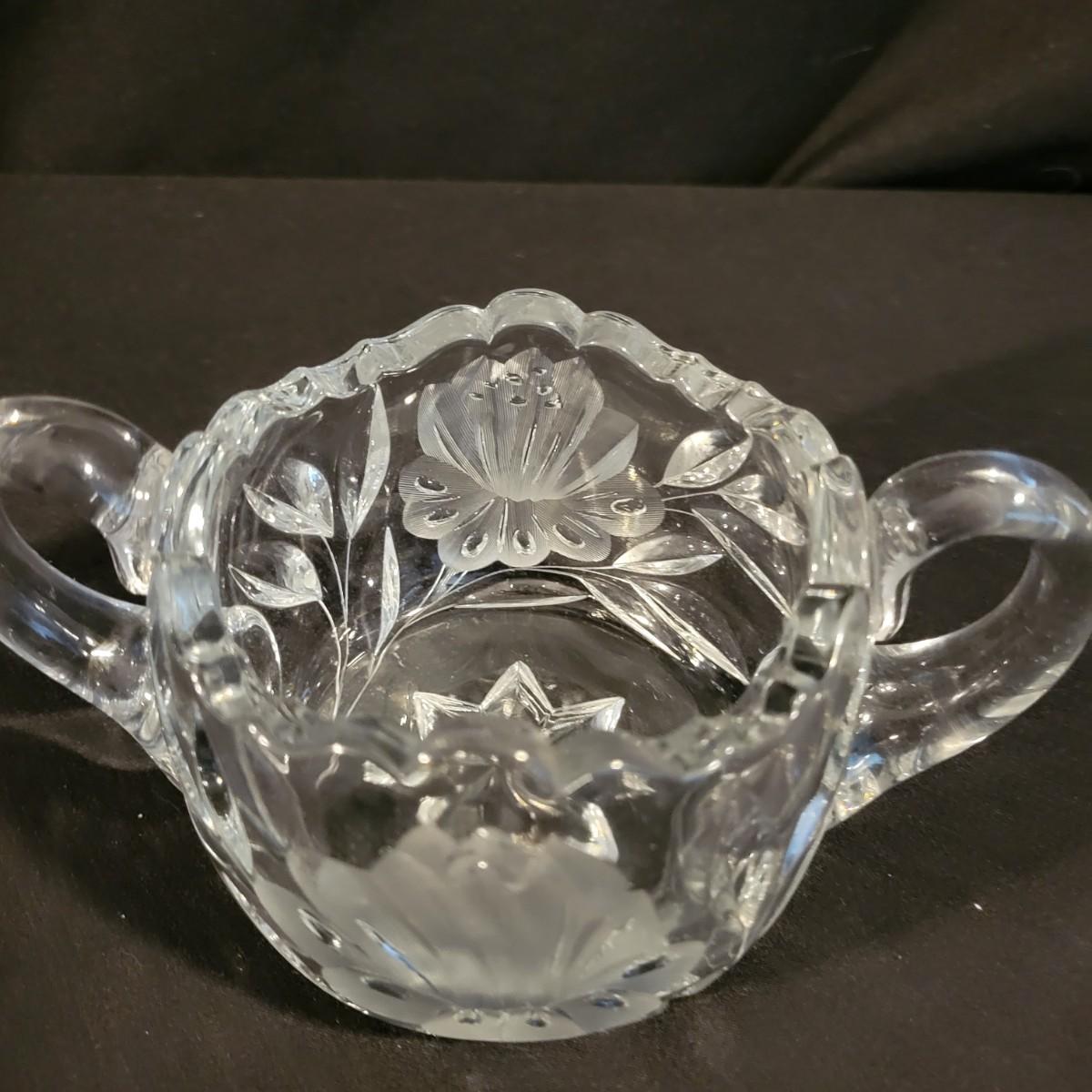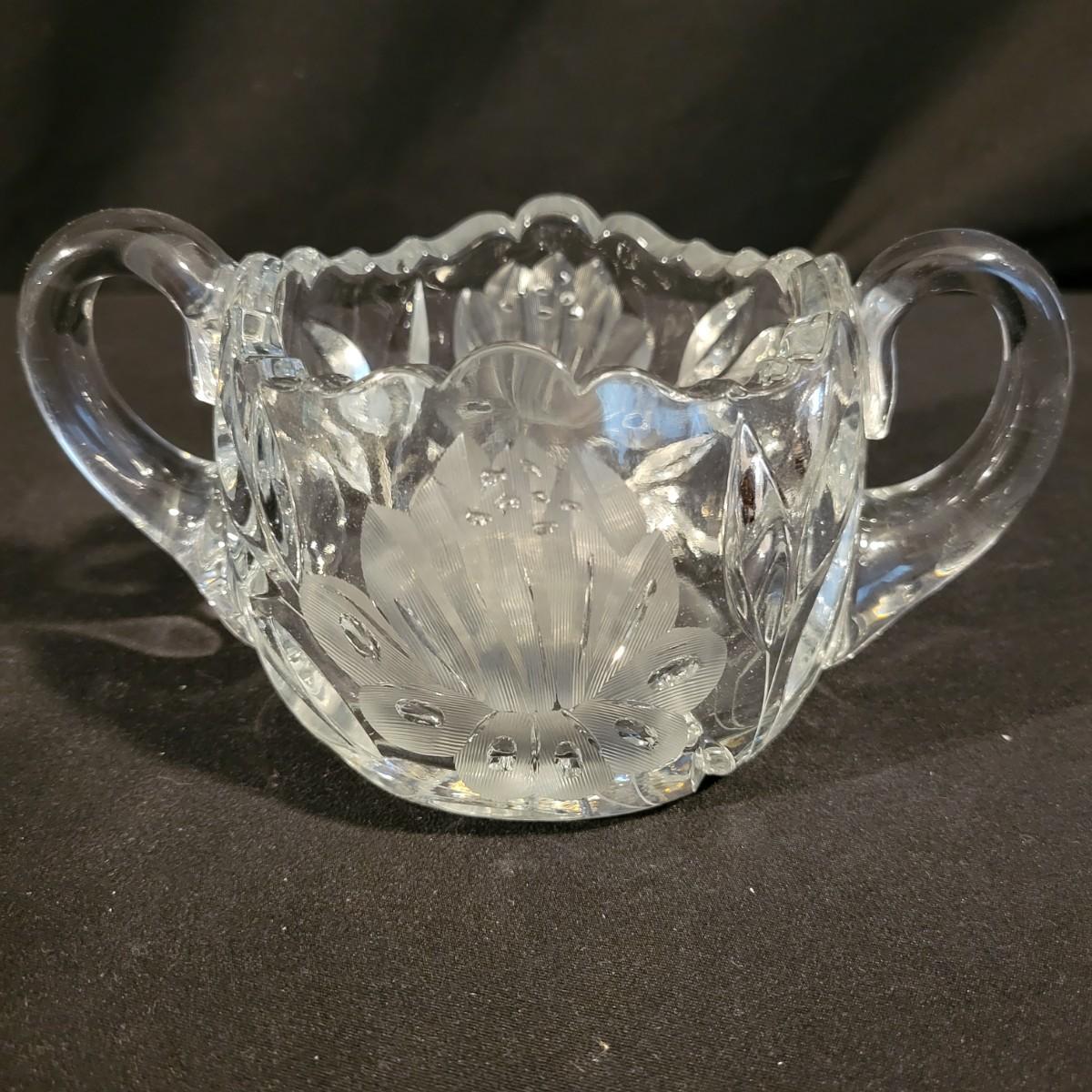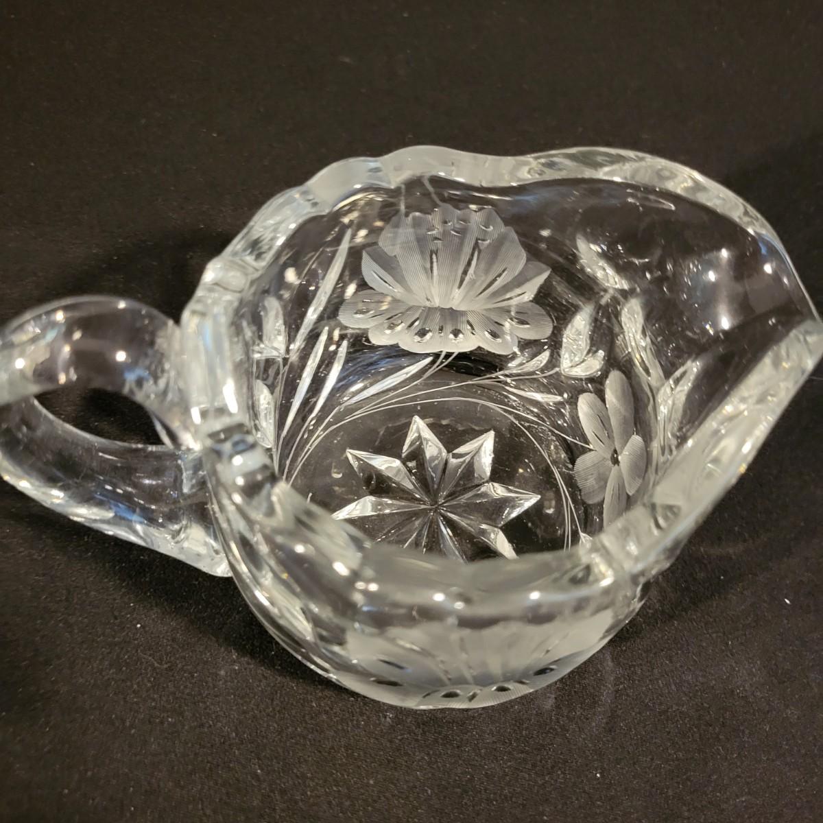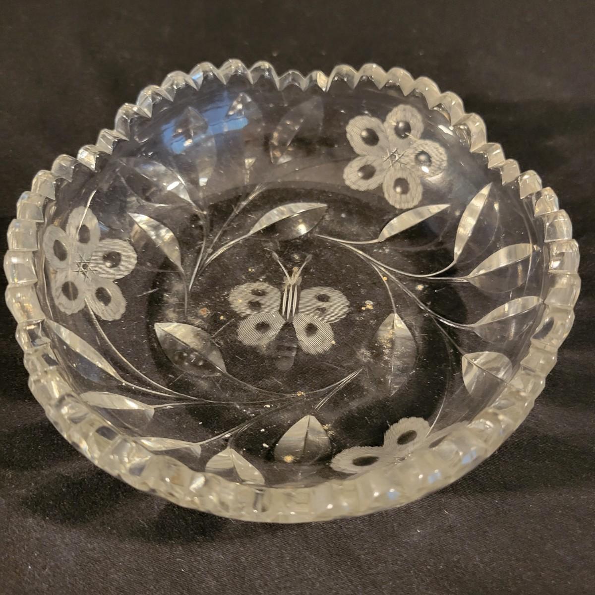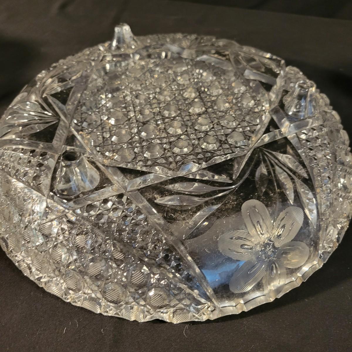 A collection of 10 pieces of pressed and cut glass pieces in good condition with no notable chips or damage. Assortment includes pieces manufactured by Anchor Hocking and is an assortment of bowls, dishes, pitchers and more. The largest piece is a footed bowl that measures approximately 12" x 3". We cannot confirm that all item are Anchor Hocking Prescut, but unlabeled items are a similar style. Shipping available