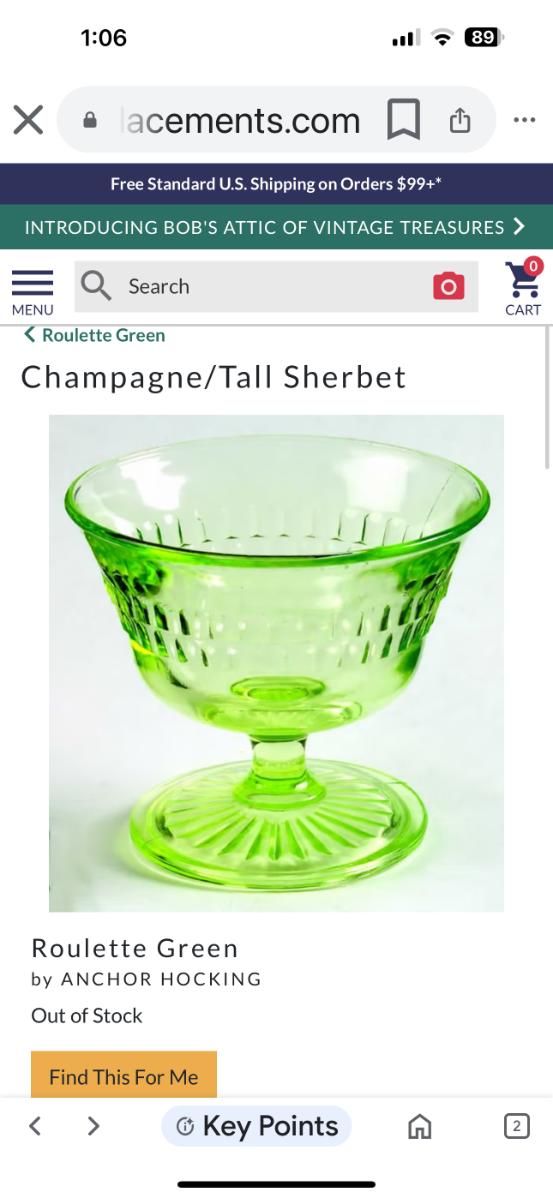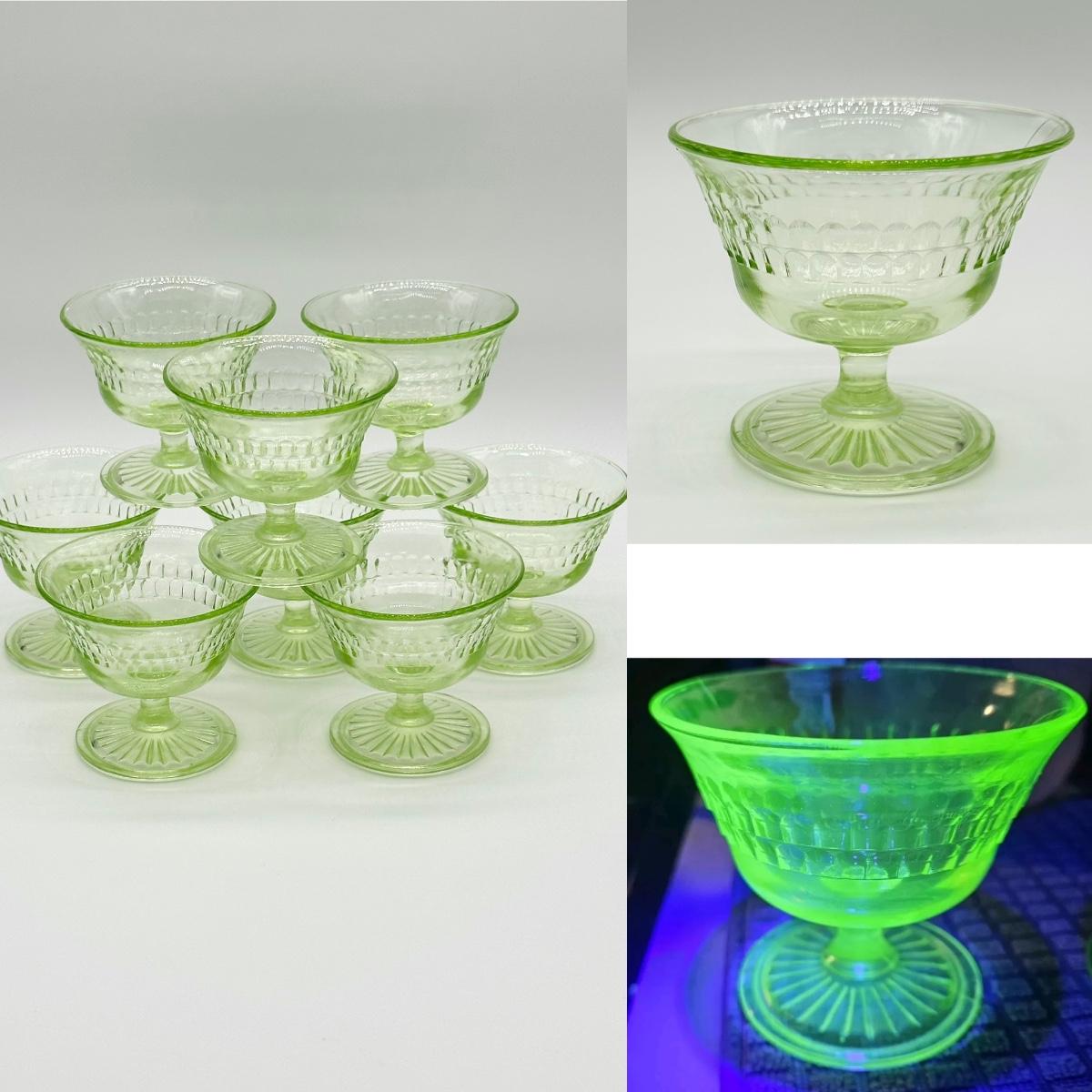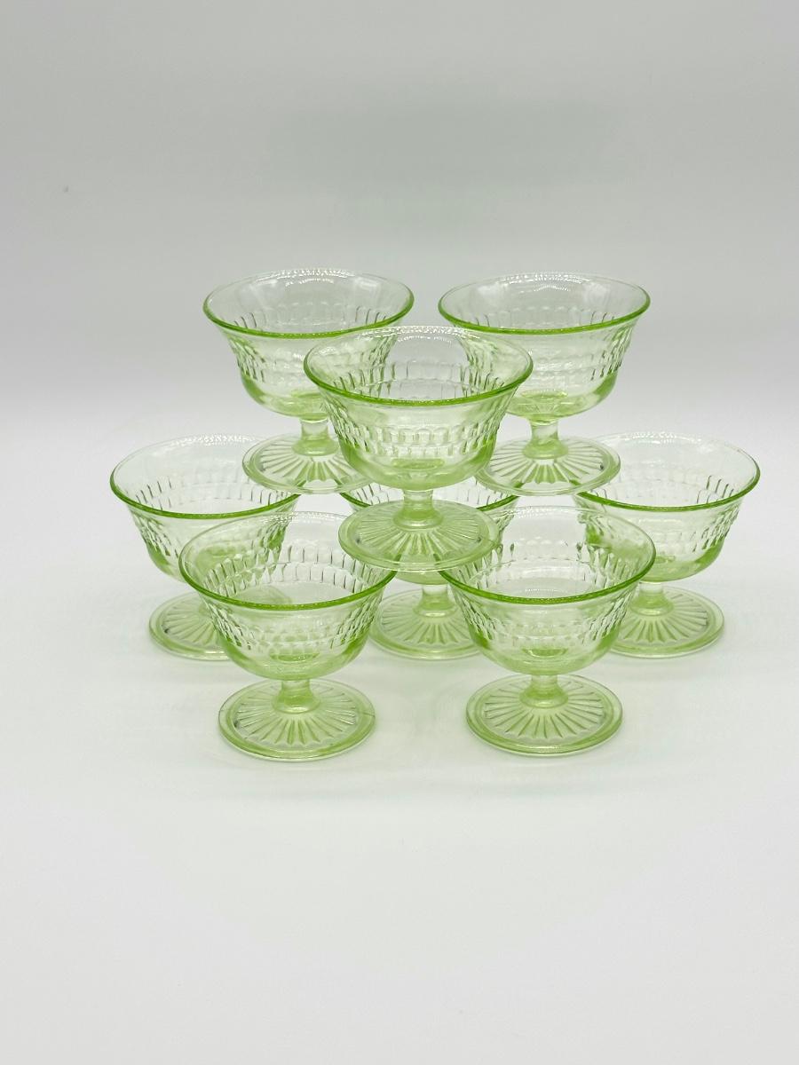 ANCHOR HOCKING ~ Roulette Green ~ Depression Uranium Sherbet ~ Eight (8)