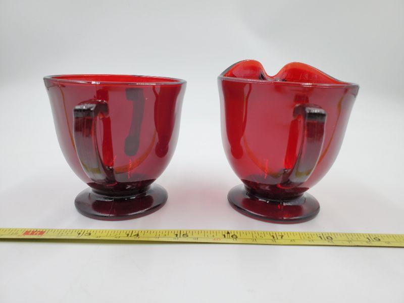 ANCHOR HOCKING ROYAL RUBY FOOTED CREAMER/SUGAR SET 1 (LOT)