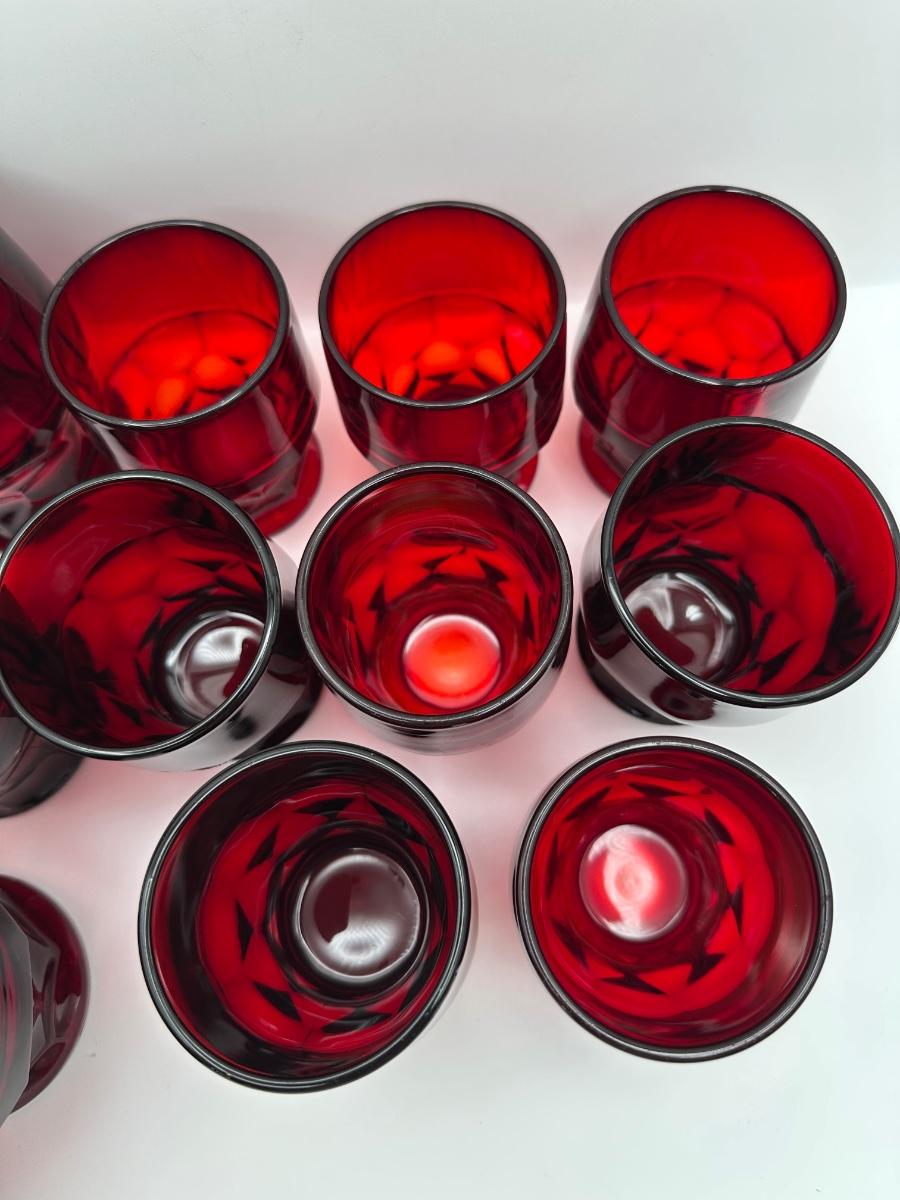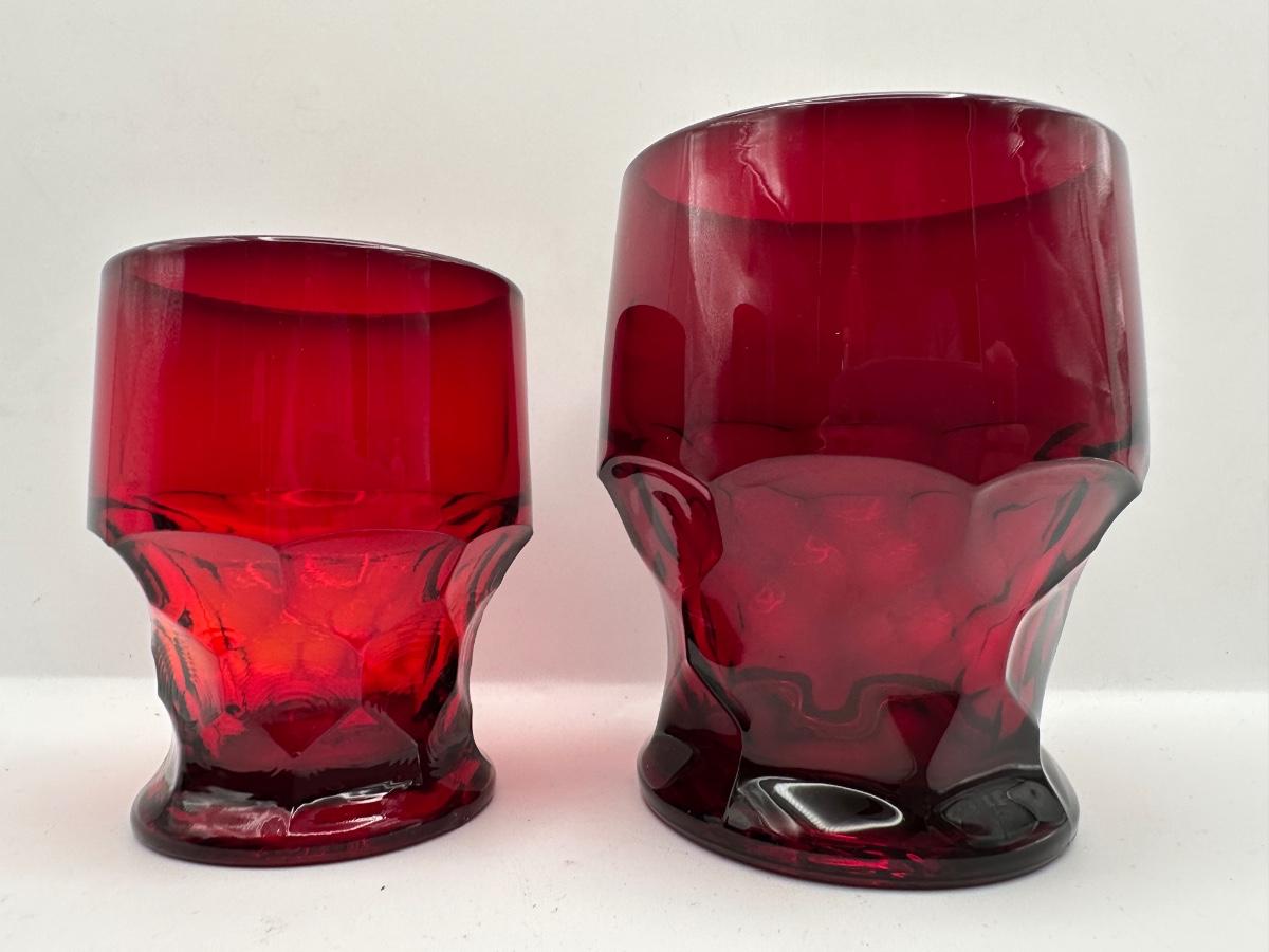 Anchor Hocking Ruby Red Honeycomb Tumblers.