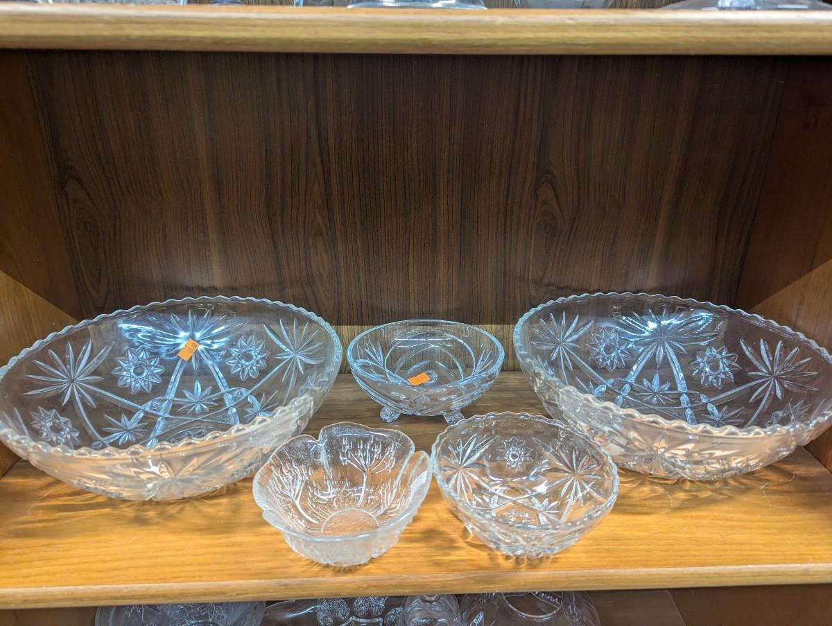 Anchor Hocking Star Of David Press Glass Bowls & Various Glass Crystal Decor