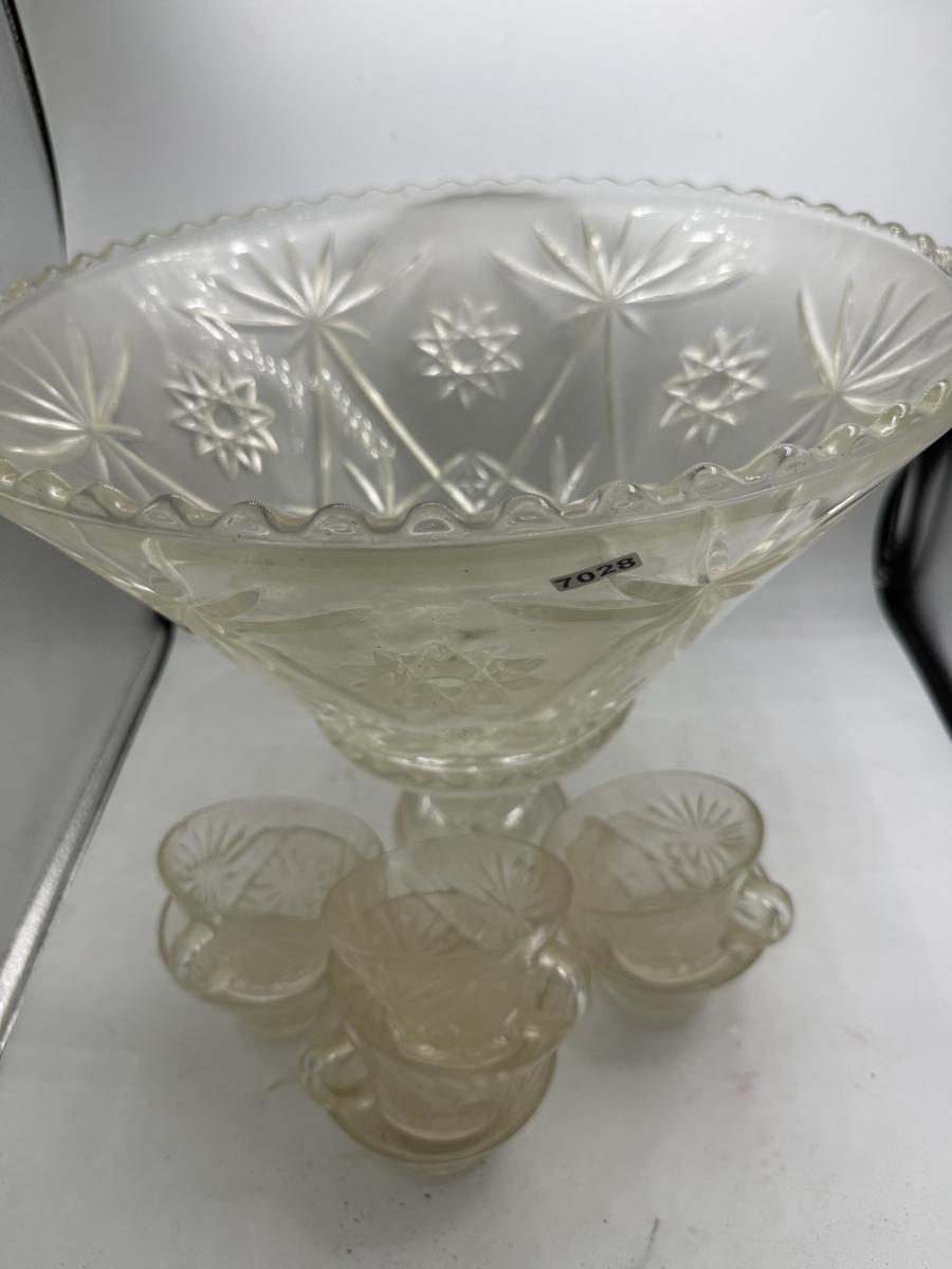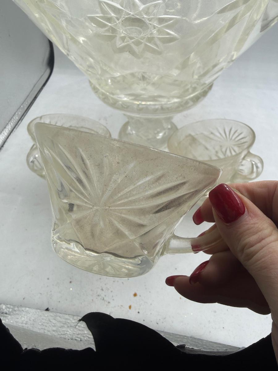 Anchor Hocking Star of David punch bowl & 6 glasses