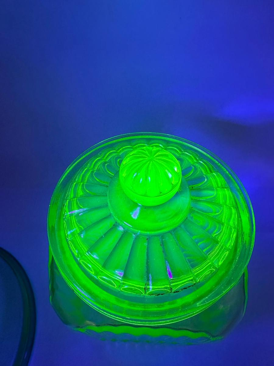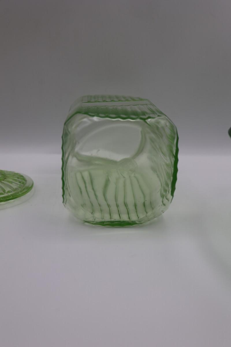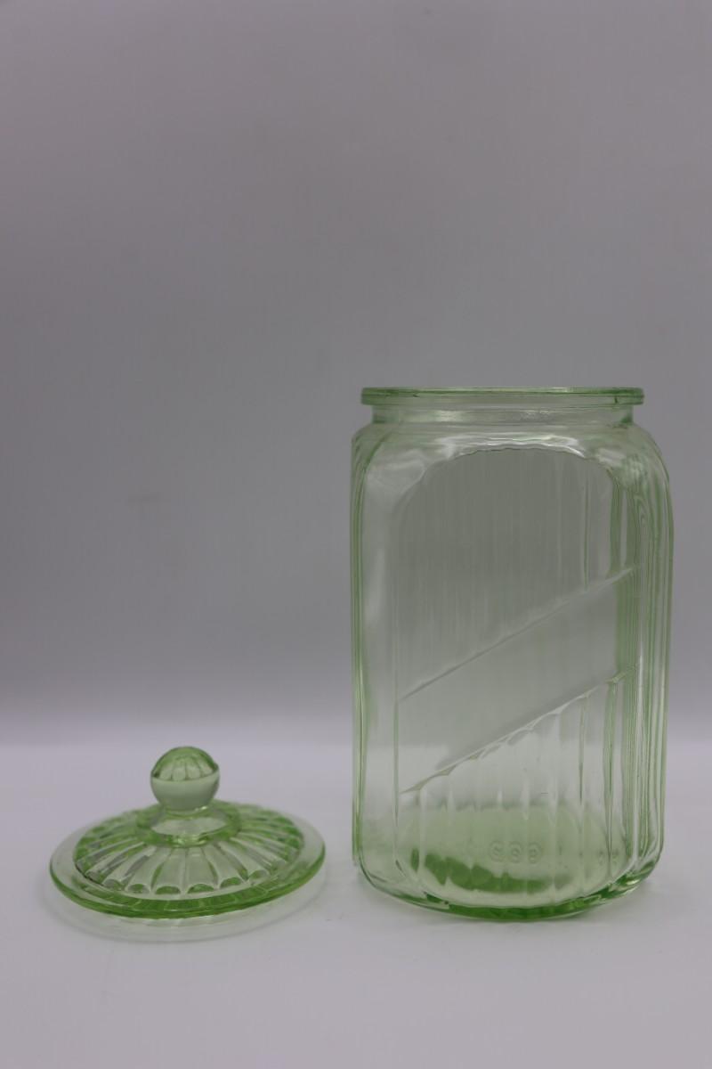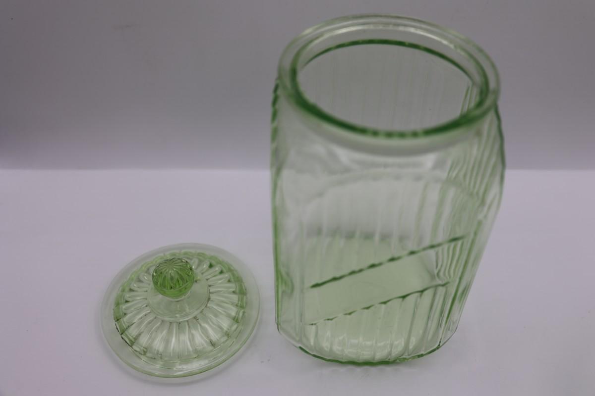 Large vintage Hocking depression 1930's uranium Vaseline glass large jars with glass lid.