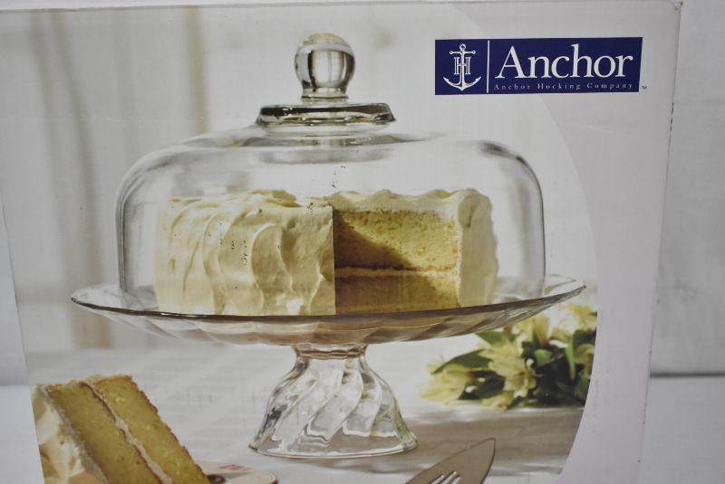 Anchor Hocking Victoria Cake Stand Plate Pedestal with Dome